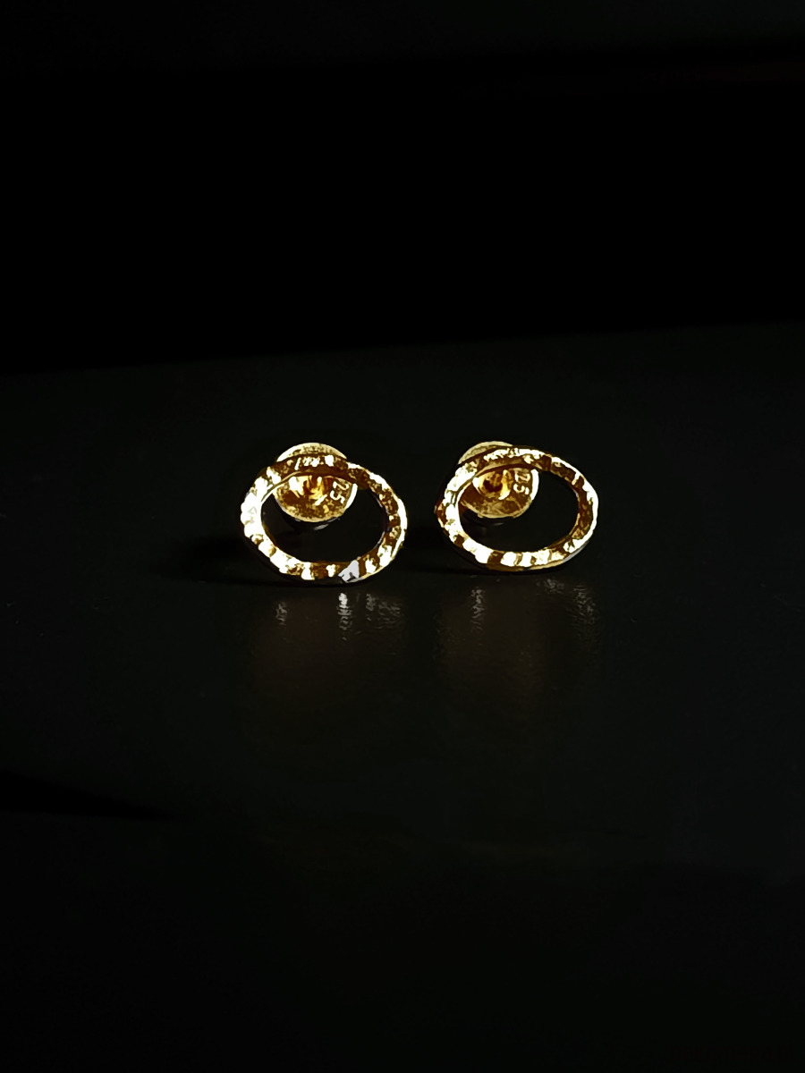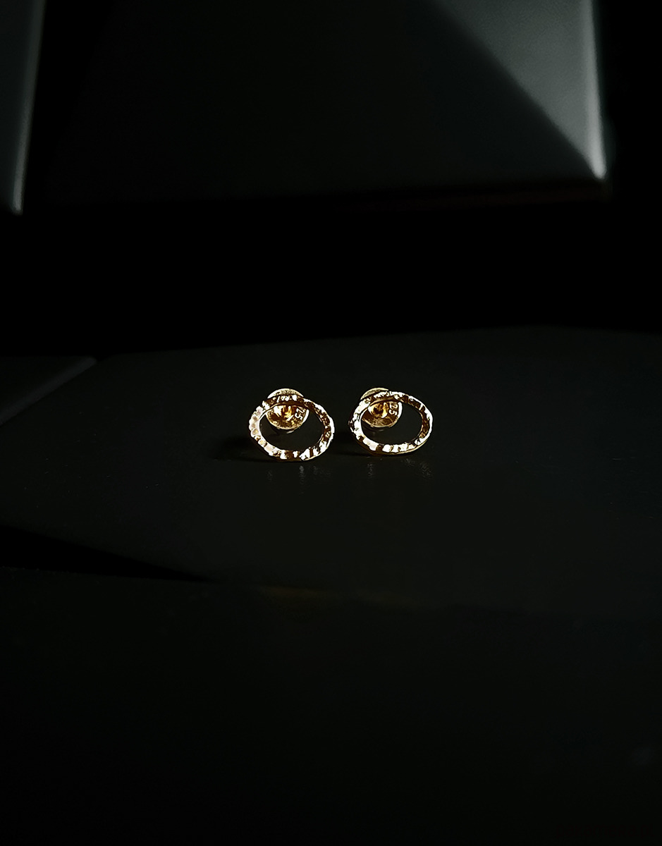 Kolczyki -sztyfty O są delikatnym, acz bardzo charakterystycznym akcentem. Stworzyłam je ze srebra próby 925, obdarowałam dziką teksturą, oraz pozłociłam 24 karatowym złotem.