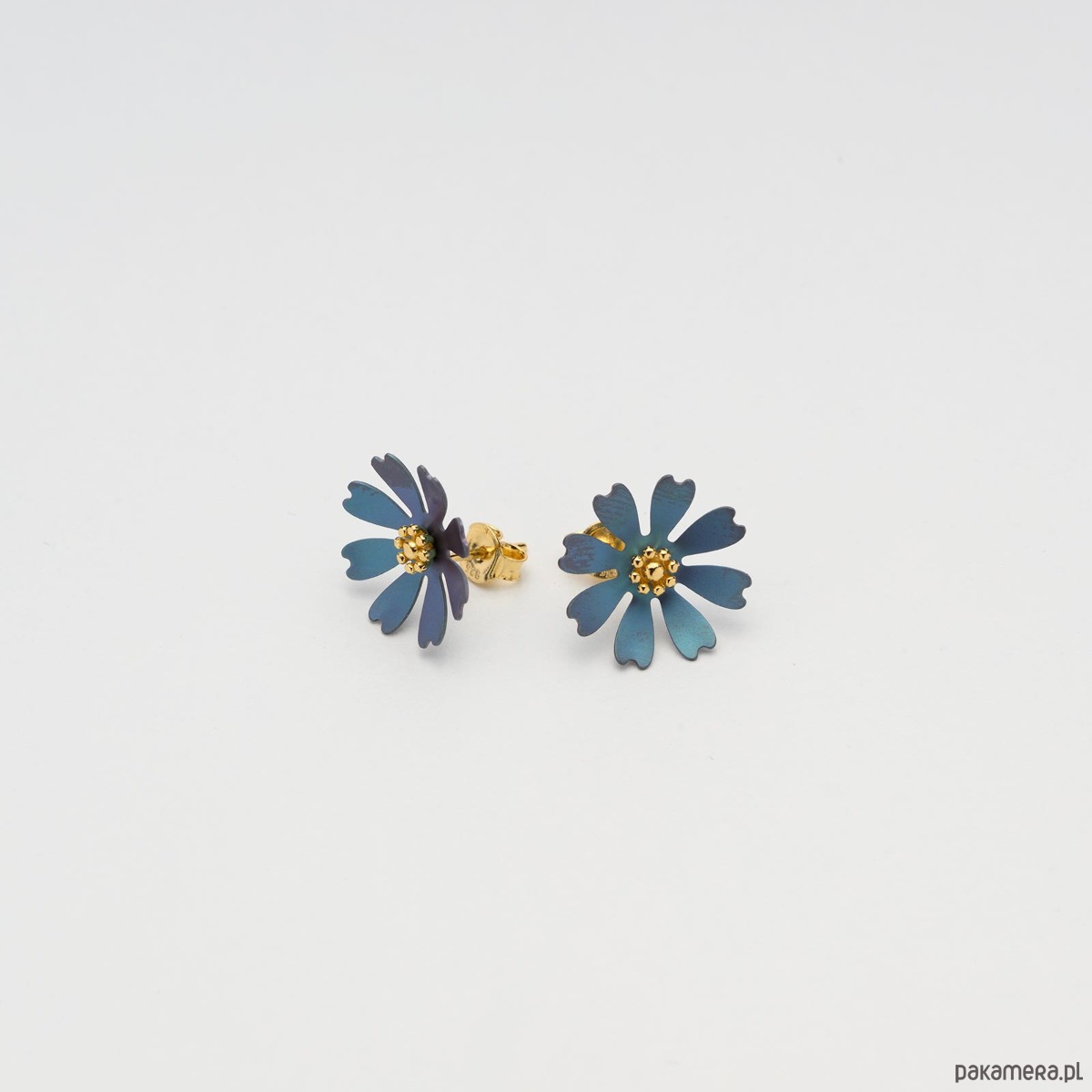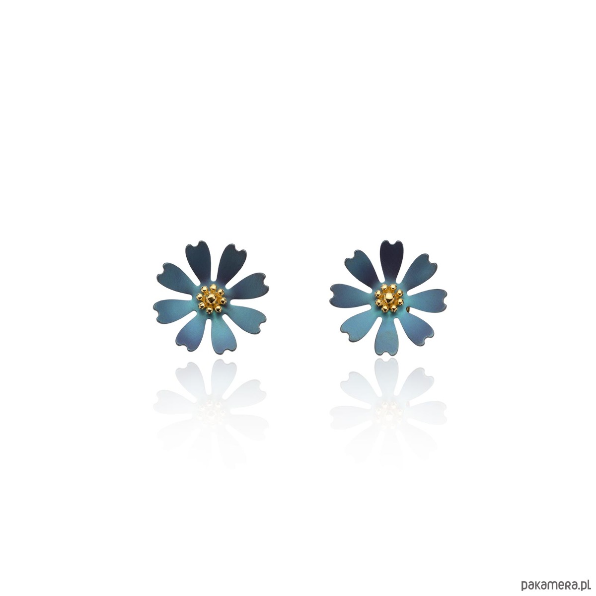 KOLCZYKI srebrne, pozłacane , niebieski tytan - KWIATUSZKI