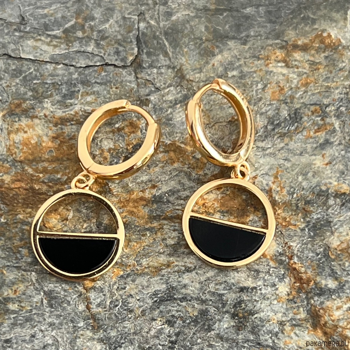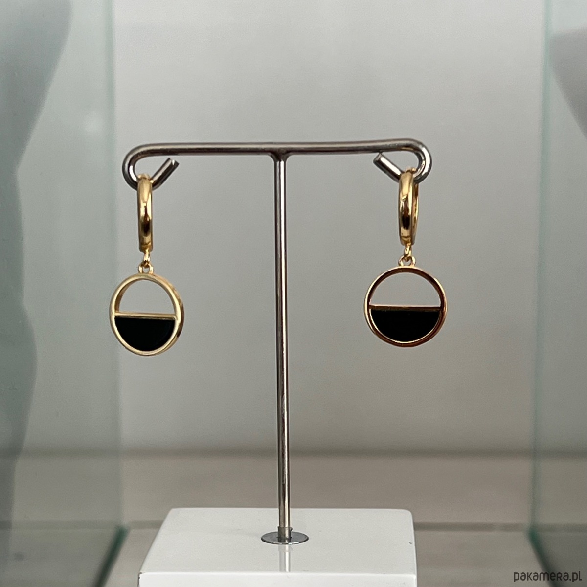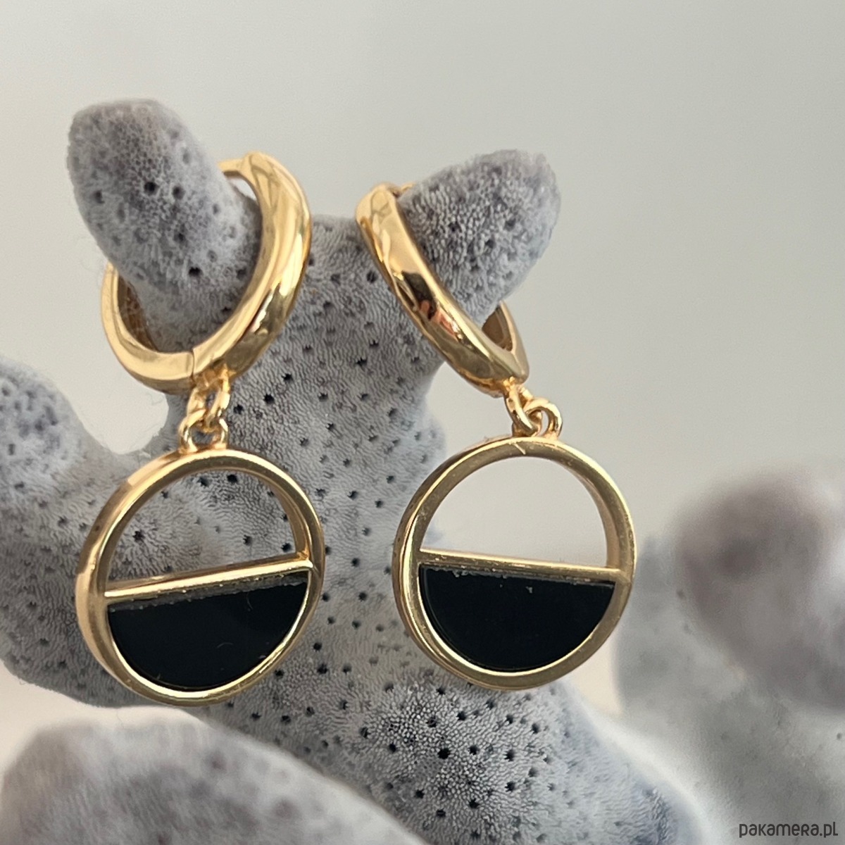 Wielkość kolczyków : dł. całkowita ok. 2,5 cm , długość elementu koła z omyksem ok. 1,3cm