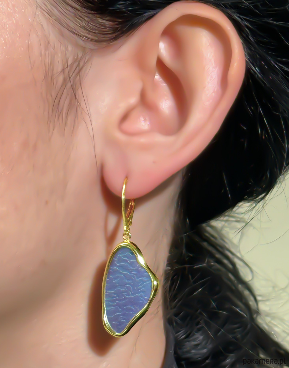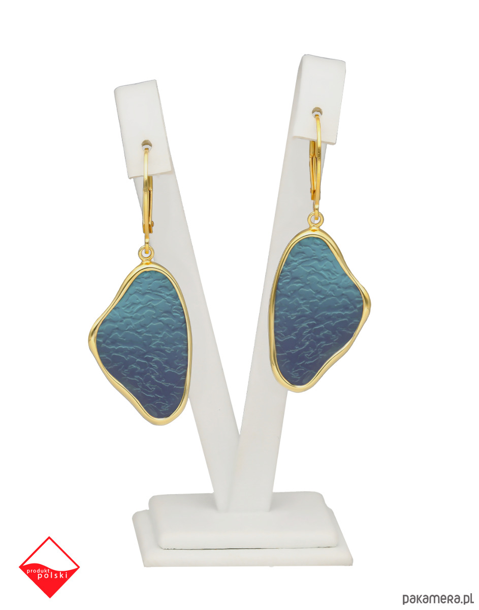 Kolczyki srebrne pozłacane z tytanem- kolor jeans