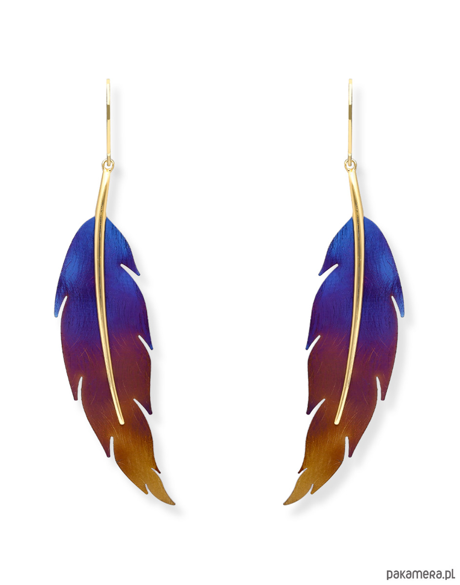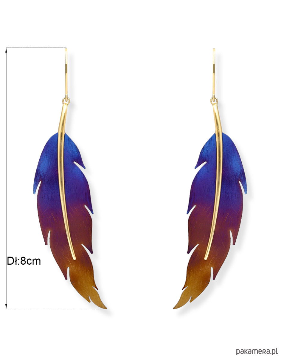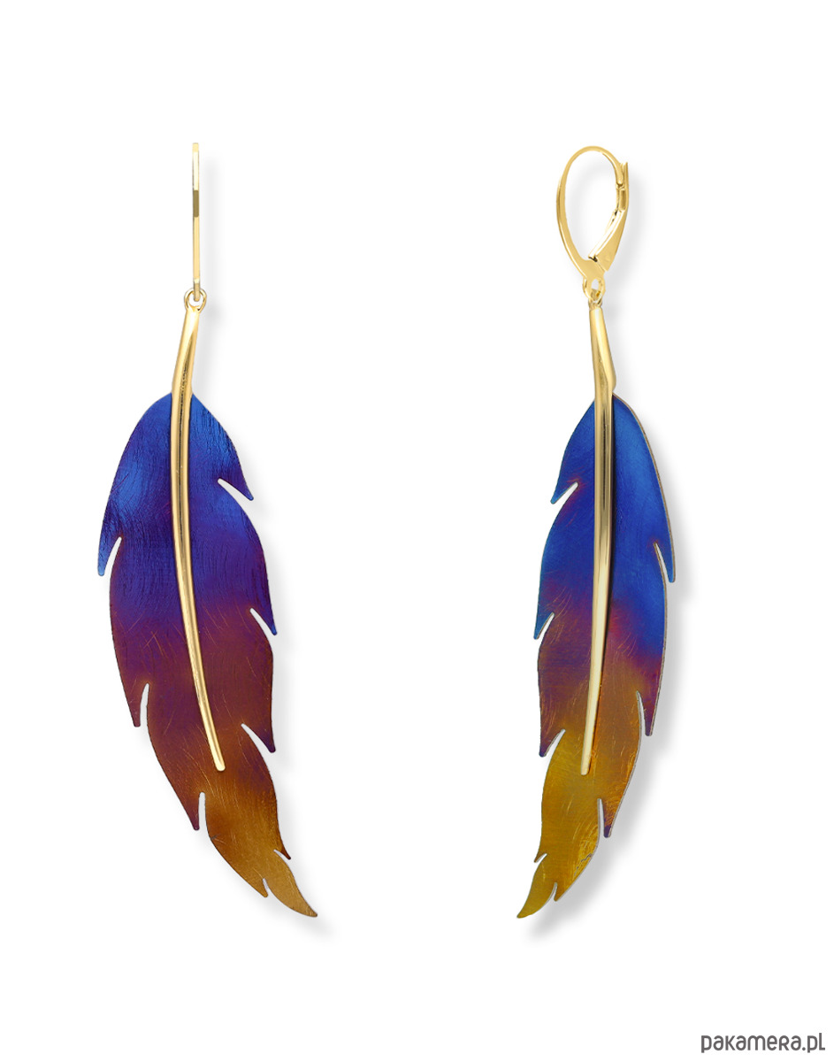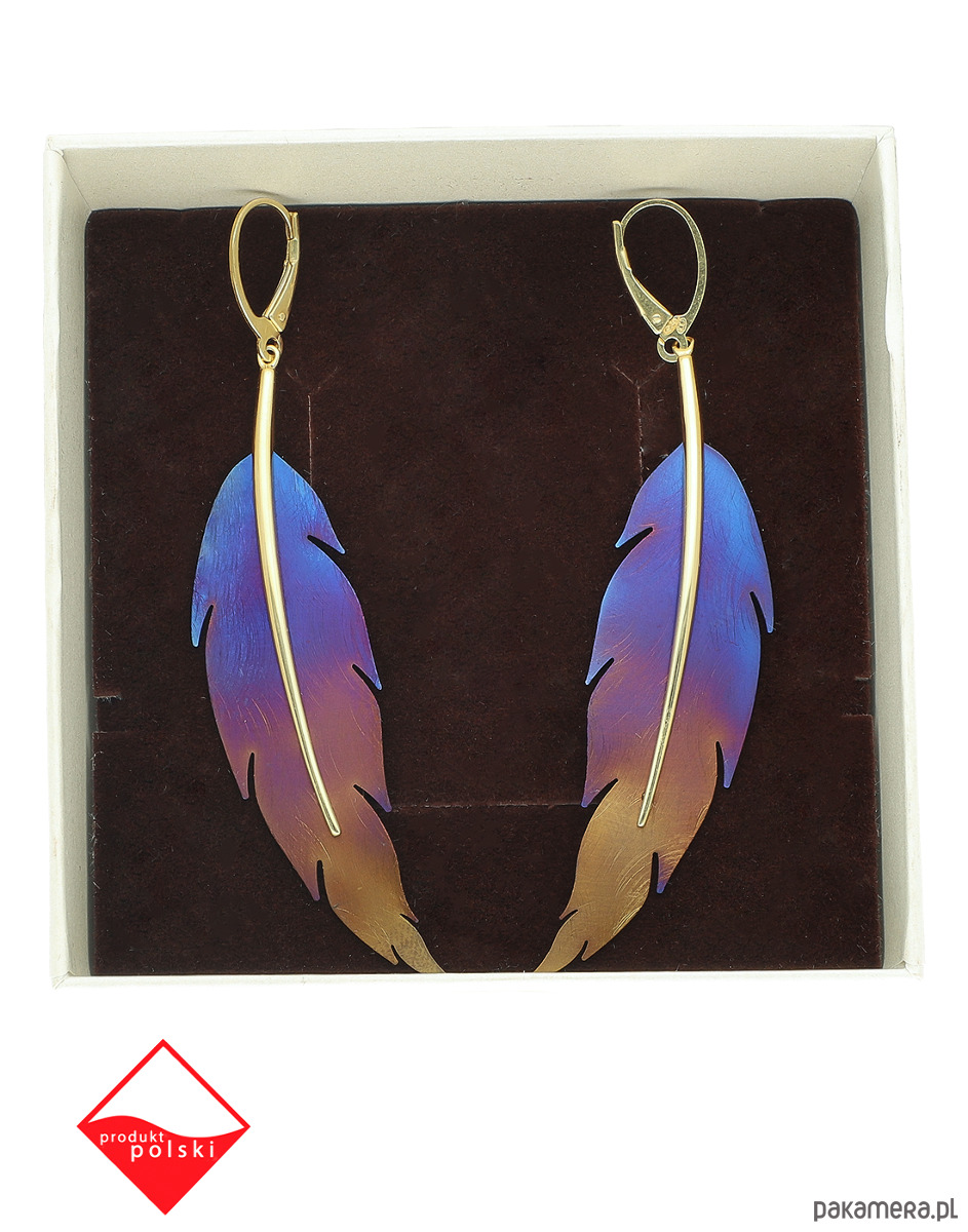 Kolczyki srebrne pozłacane z tytanowym liściem-kolor wielobarwny
