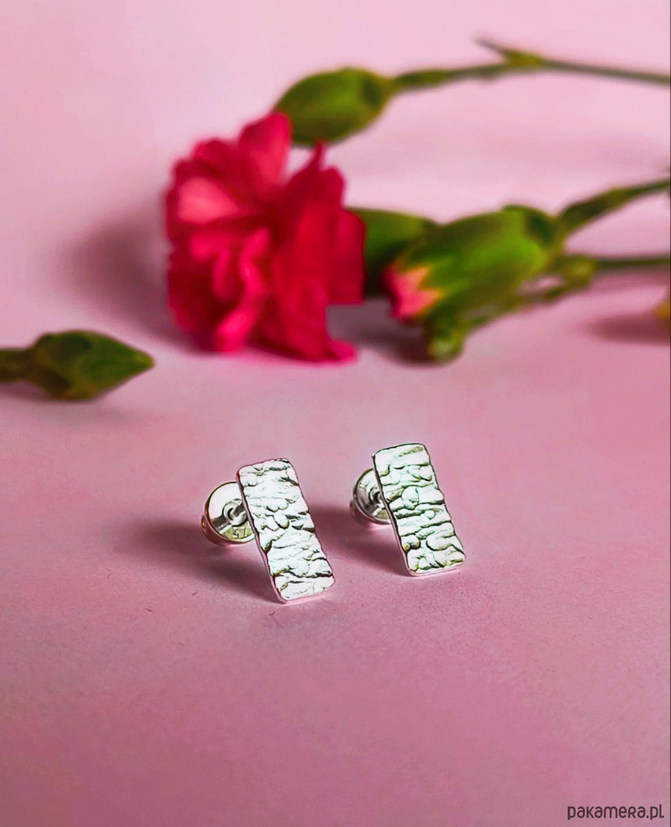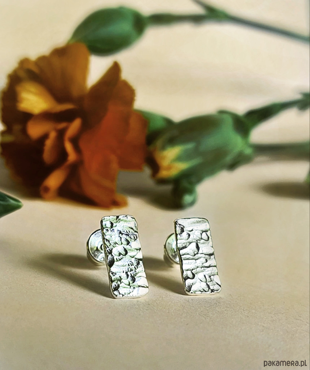 Kolczyki wykonałam własnoręcznie ze srebra próby 925, powierzchnia jest fakturowana, dzięki czemu pięknie załamuje światło.