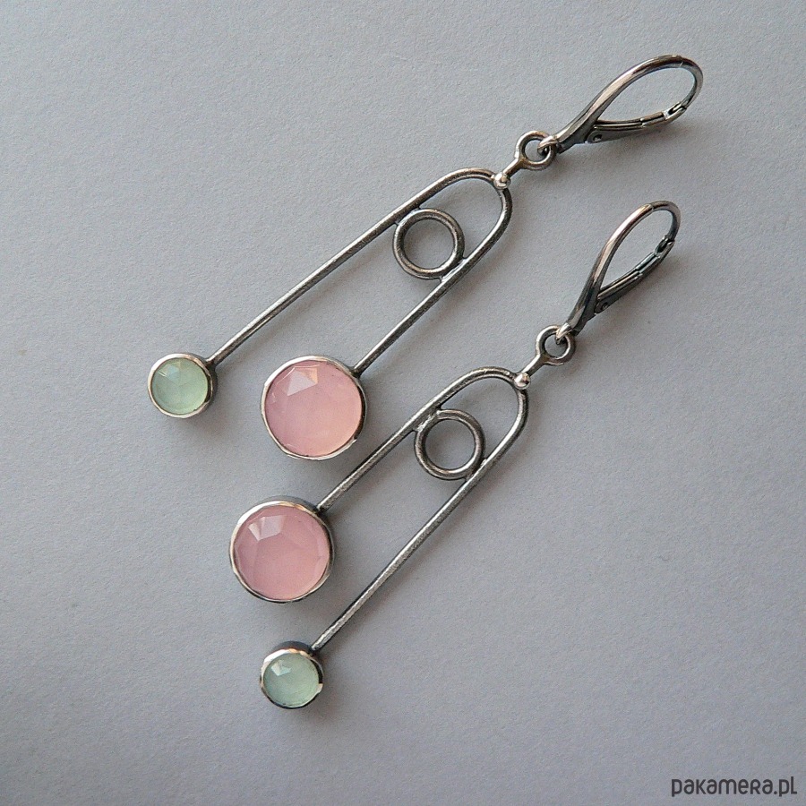 Kolczyki srebrne -pudrowy róż i mięta-