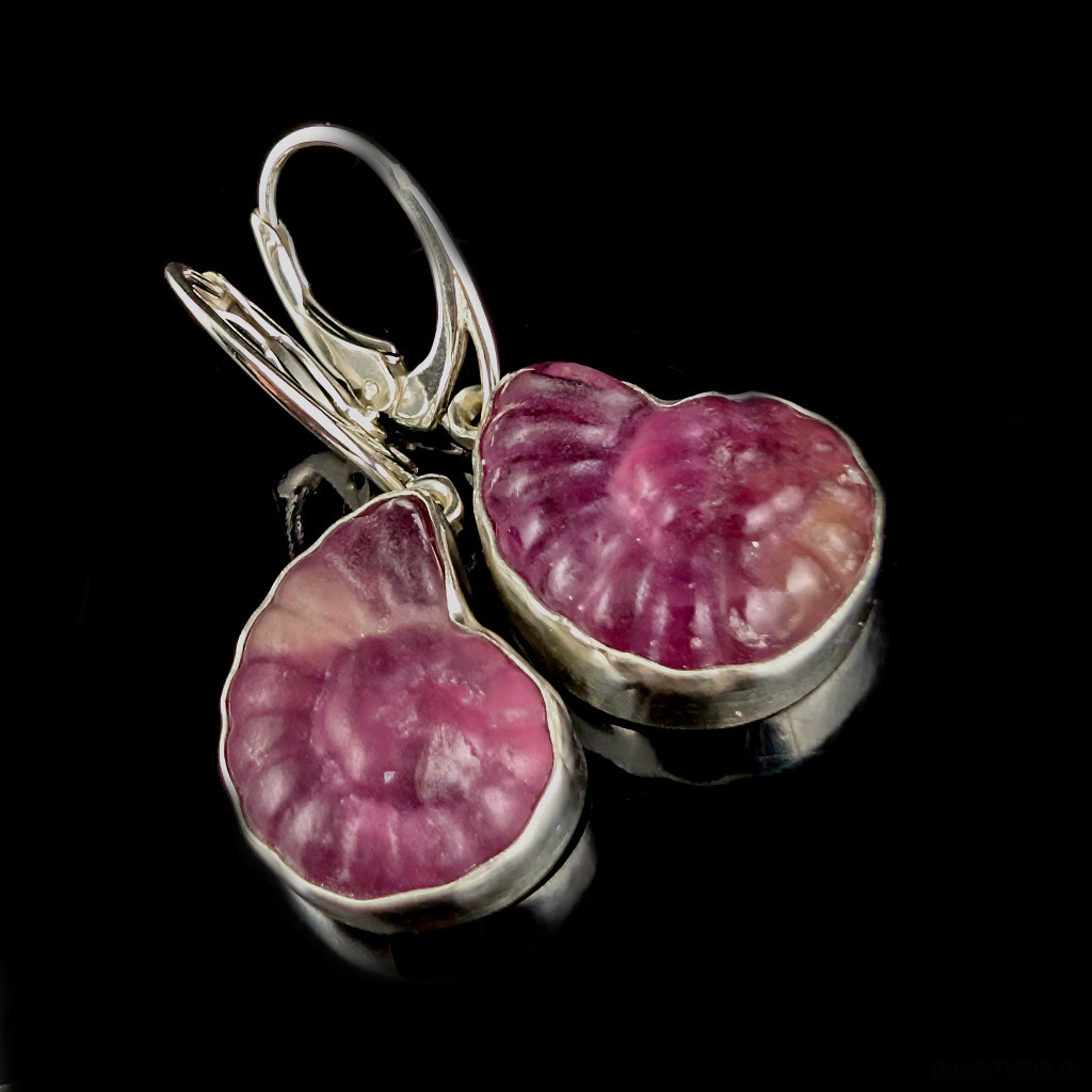 Kolczyki wykonane ze srebra próby 925.z przepięknymi fluorytami w kształcie amonitów. Wymiary oprawy kamienia 17 x 14 mm. Długość max 34 mm. Waga jednego kolczyka 4.53 grama. Zapakowane w ozdobne pudełeczko.