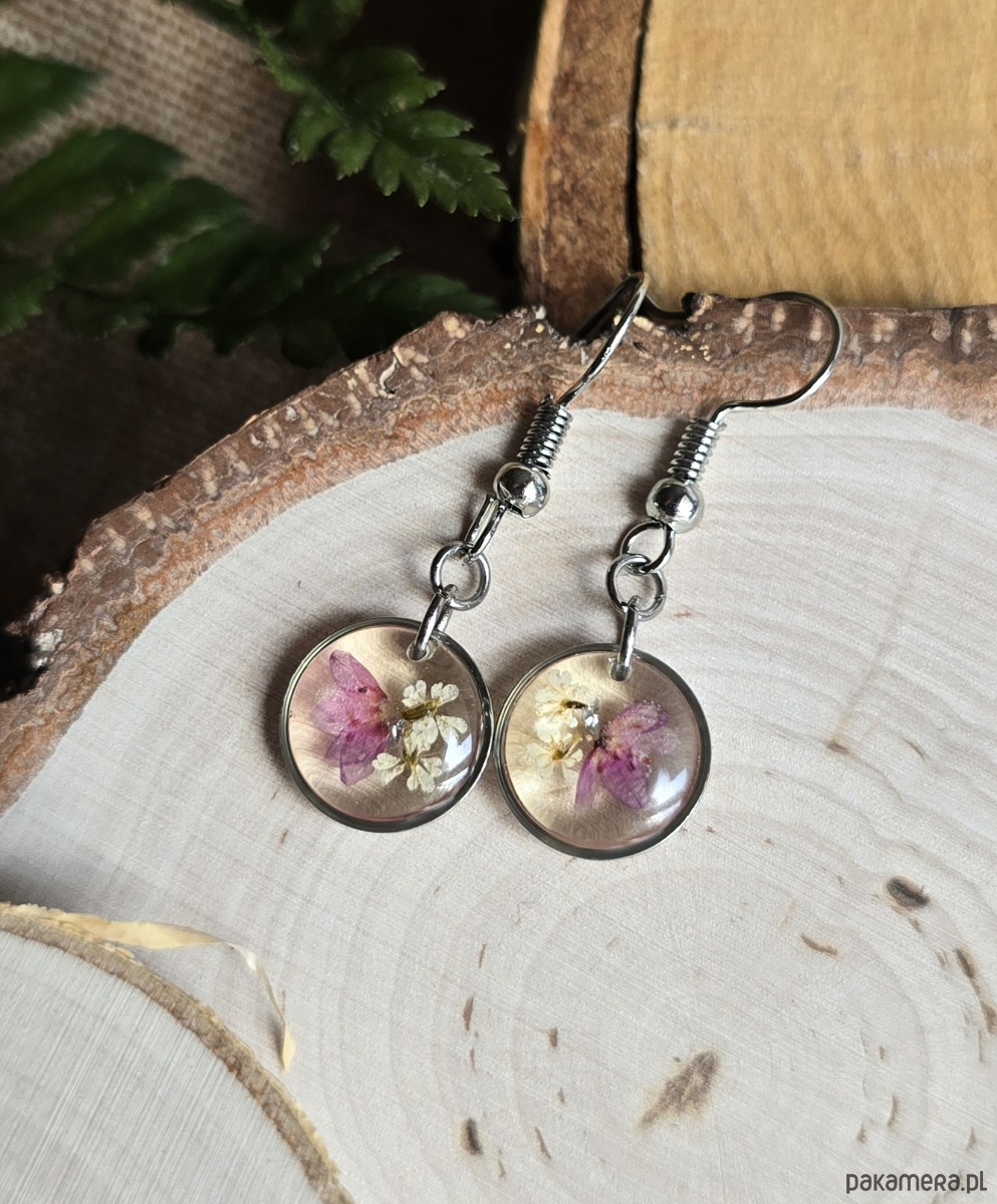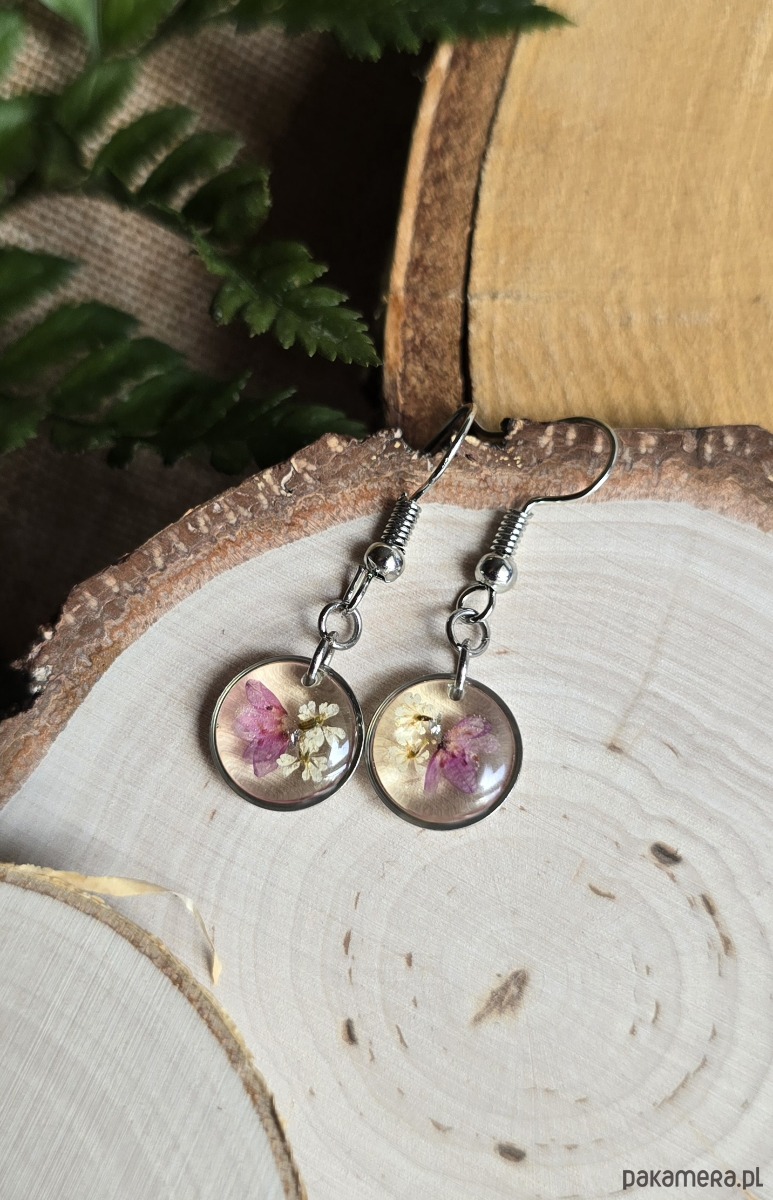 Oferuję Państwu unikalną biżuterię. Kolczyki są wykonane z suszonych kwiatów i żywicy epoksydowej. Biżuteria jest wspaniałym i oryginalnym prezentem na lata.