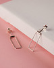 Kolczyki w kształcie prostokątów delikatnie poruszają się w uchu, subtelnie odbjając światło.