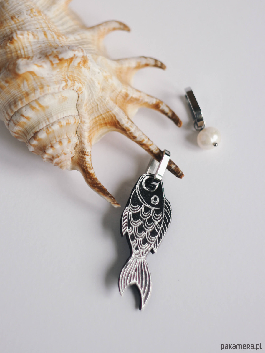 Srebrny wzór rybki jest przeze mnie odręcznie wykonany, a to sprawia, że każdy kolczyk delikatnie się różni, jest jedyny w swoim rodzaju.