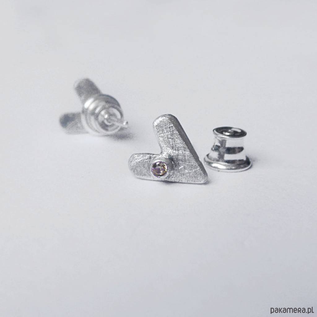 Kolczyki na sztyftach wykonane są ze srebra, cyrkonia . Srebro - próby 0,925, zmatowione Długość 0,8 Szerokość 0.7 cm.