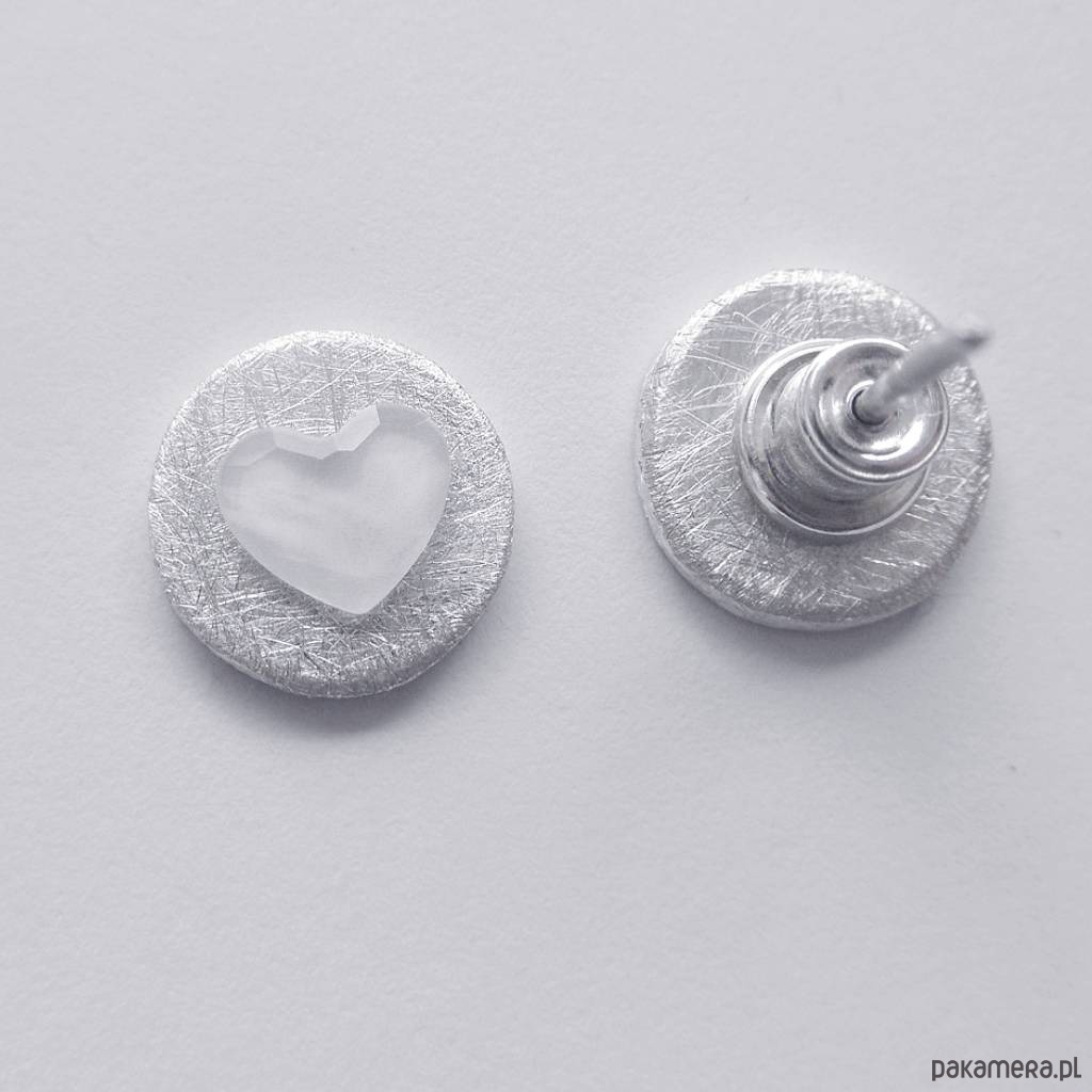 Serduszko kolczyki - uroczy dodatek . Idealne dla kobiet, które cenią ładną oraz oryginalną biżuterię. Kolczyki na sztyftach wykonane są z srebra, kryształ SWAROVSKI ELEMENTS (Wymiary: 6 mm ). Srebro zmatowione. Szerokość 1 cm. Waga - ok. 2g