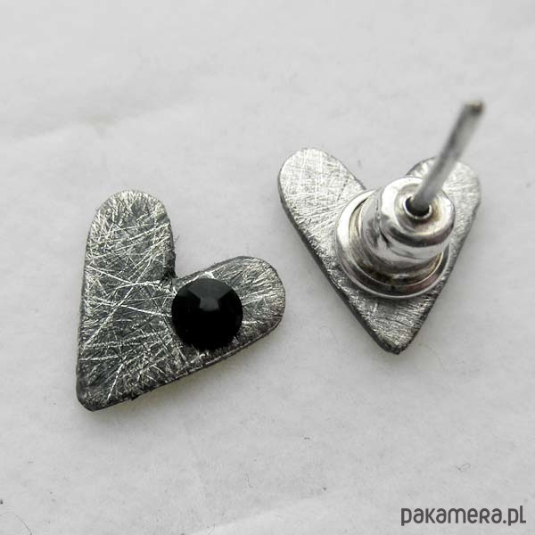 Kolczyki na sztyftach wykonane są z srebra, kryształ SWAROVSKI ELEMENTS (Wymiary: 3x3.2mm ). Srebro zmatowione, oksydowane. Szerokość 1 cm. Waga - ok. 2g