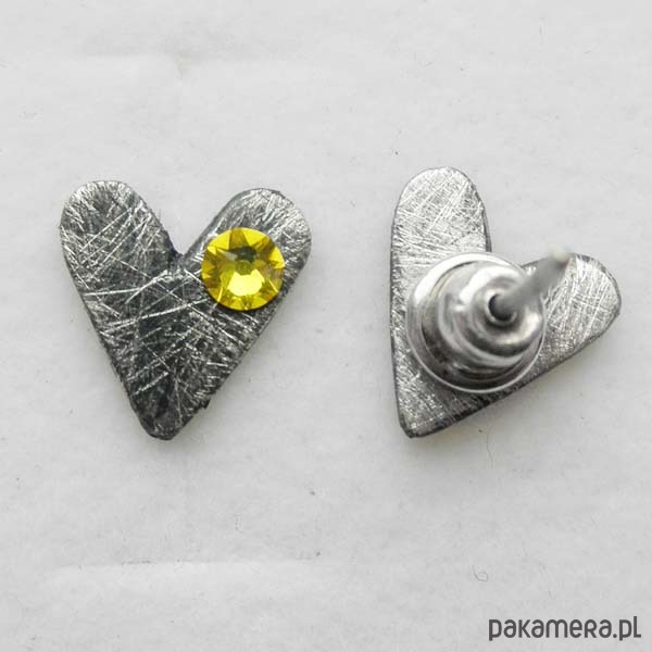 Kolczyki na sztyftach wykonane są z srebra, kryształ SWAROVSKI ELEMENTS (Wymiary: 3x3.2mm ). Srebro zmatowione, oksydowane. Szerokość 1 cm. Waga - ok. 2g