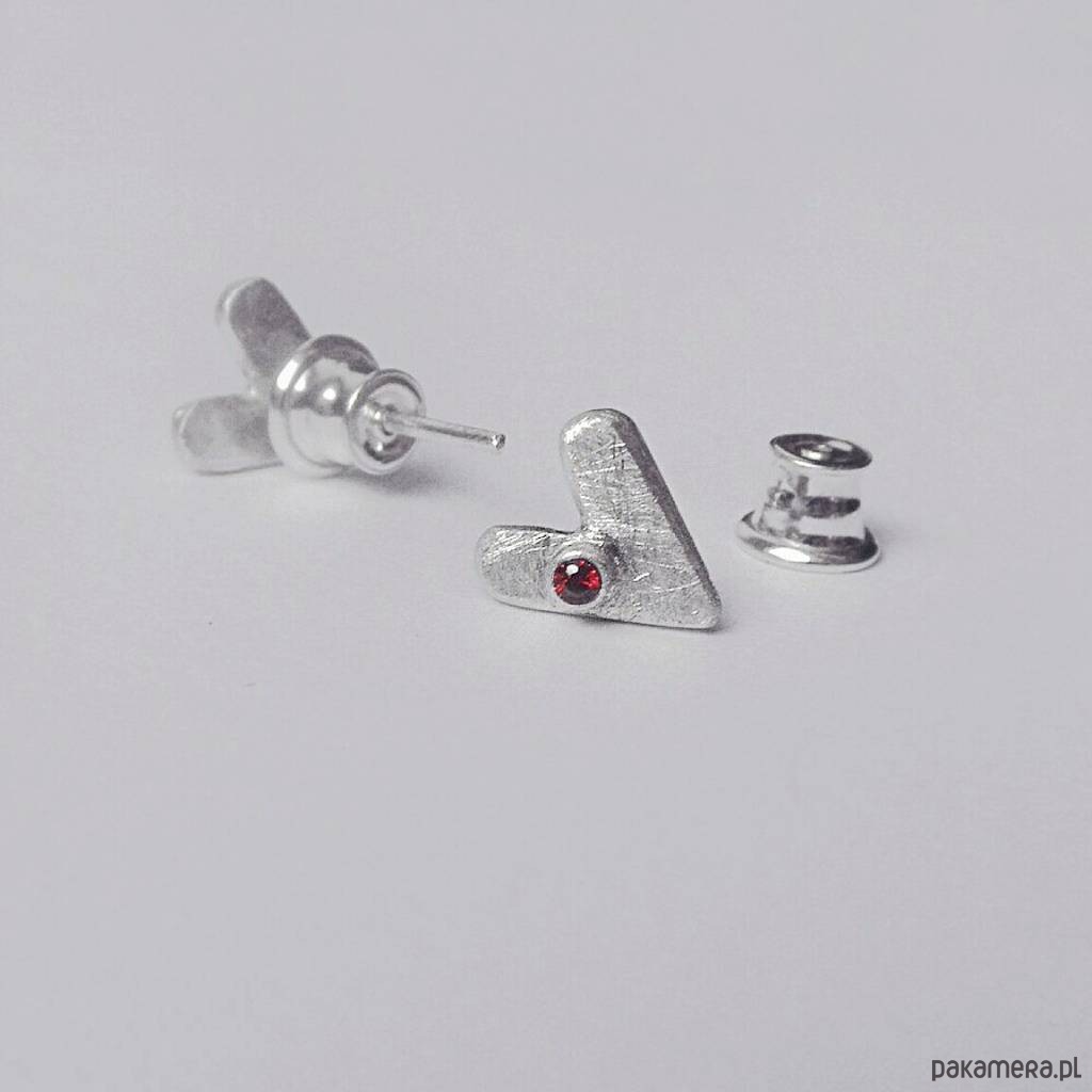 Kolczyki na sztyftach wykonane są ze srebra, granat . Srebro - próby 0,925, zmatowione Długość 0,8 Szerokość 0.7 cm.