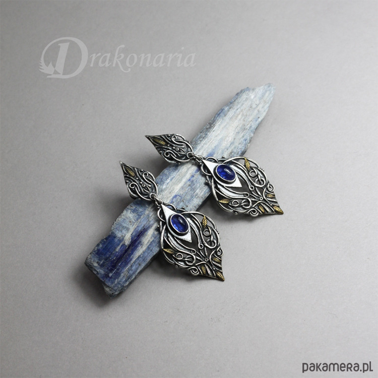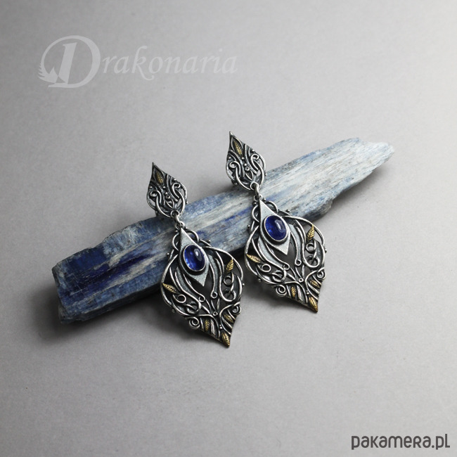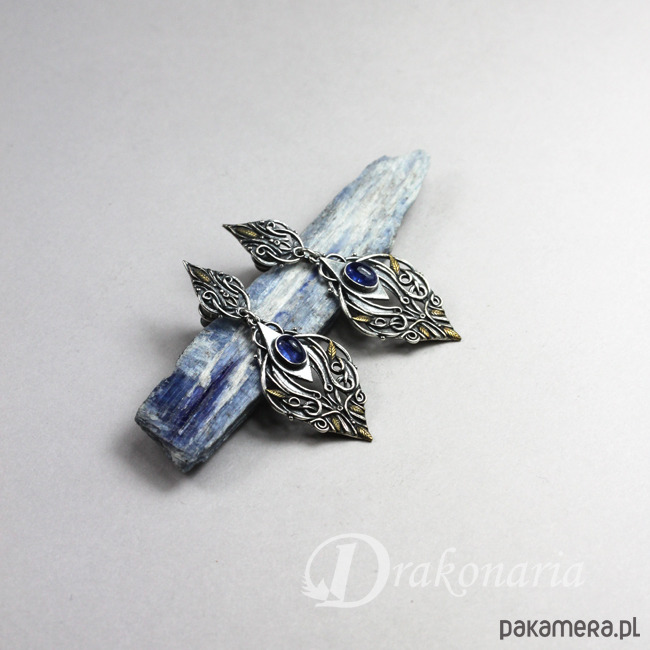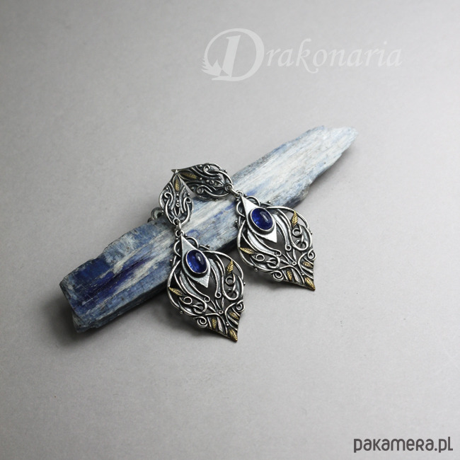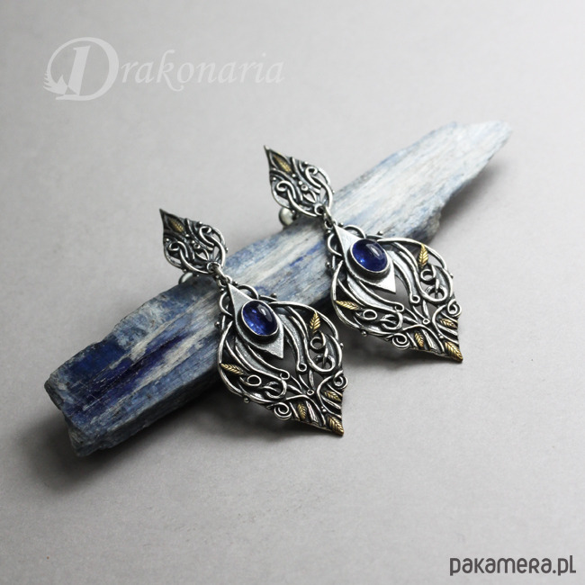 Kolczyki srebrne Sindarin - Narn, kyanit i złoto