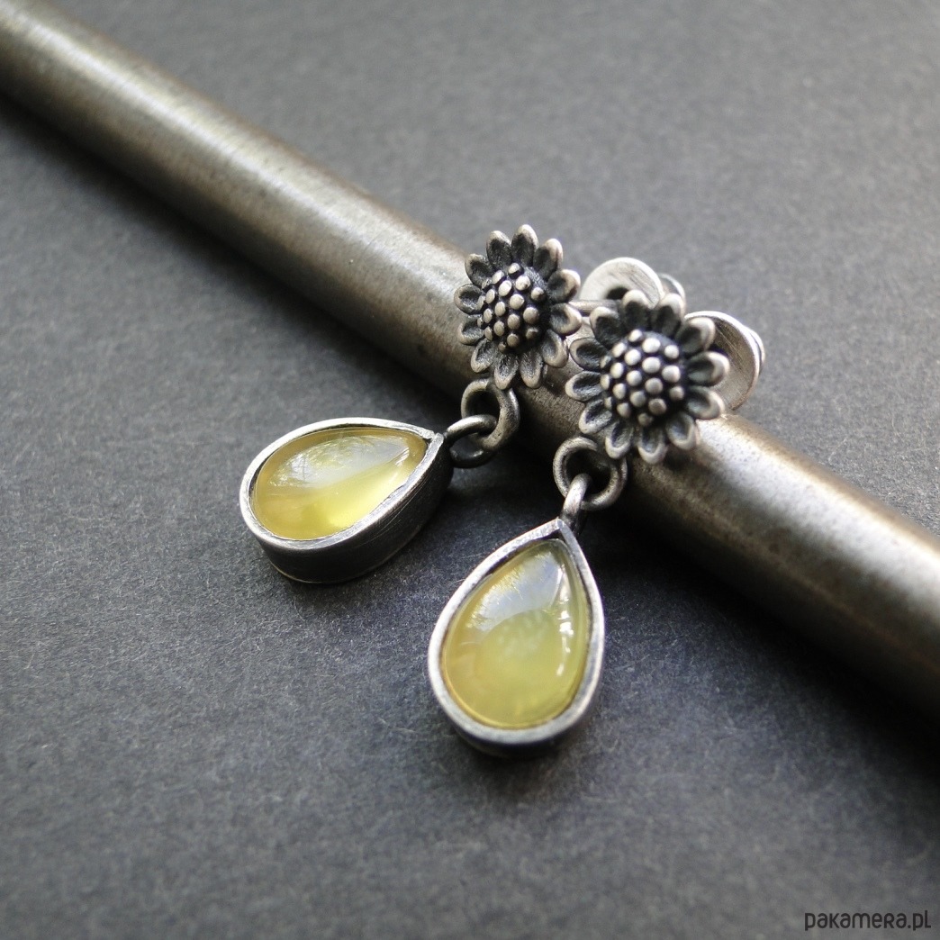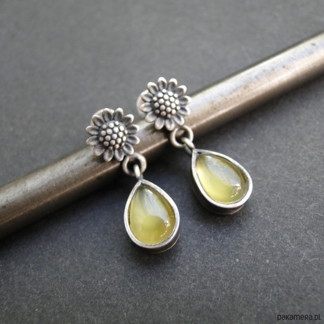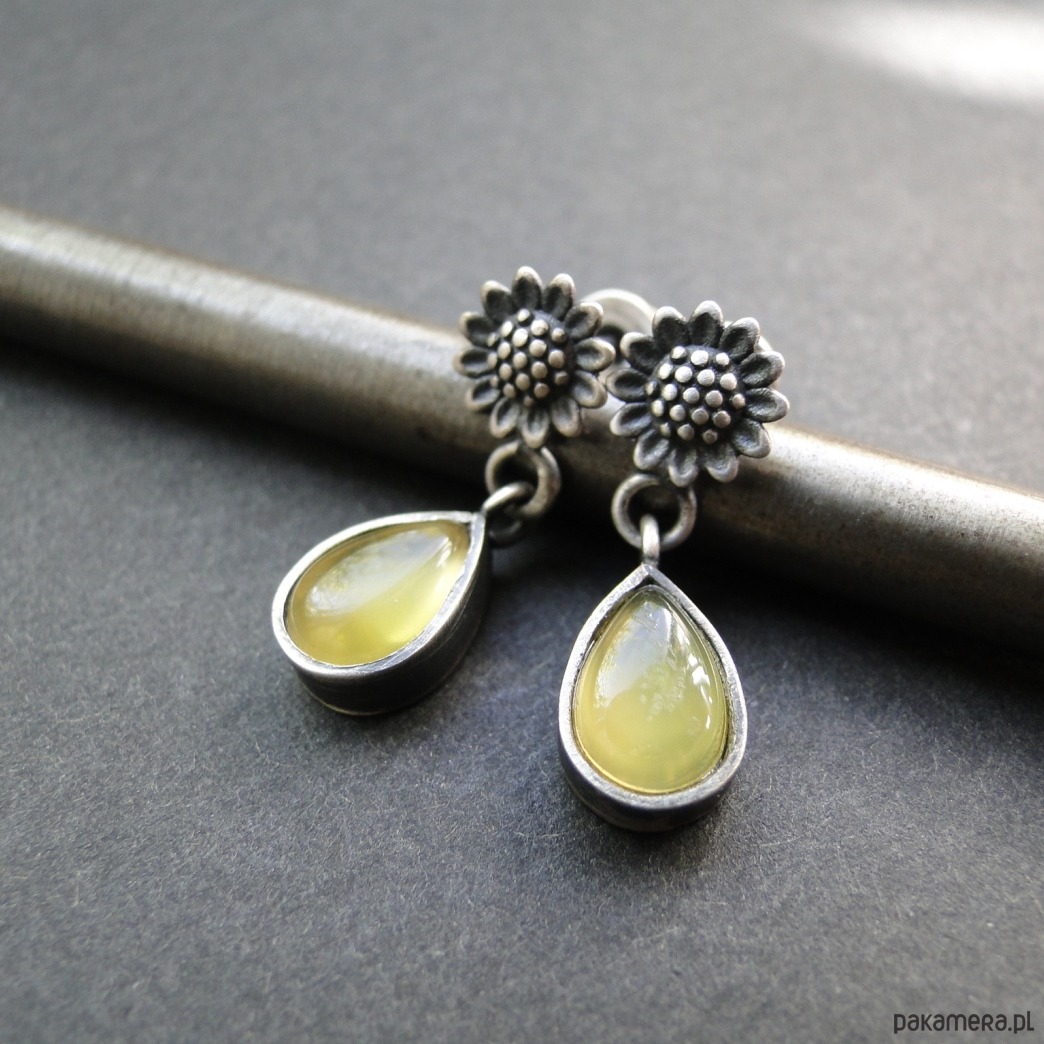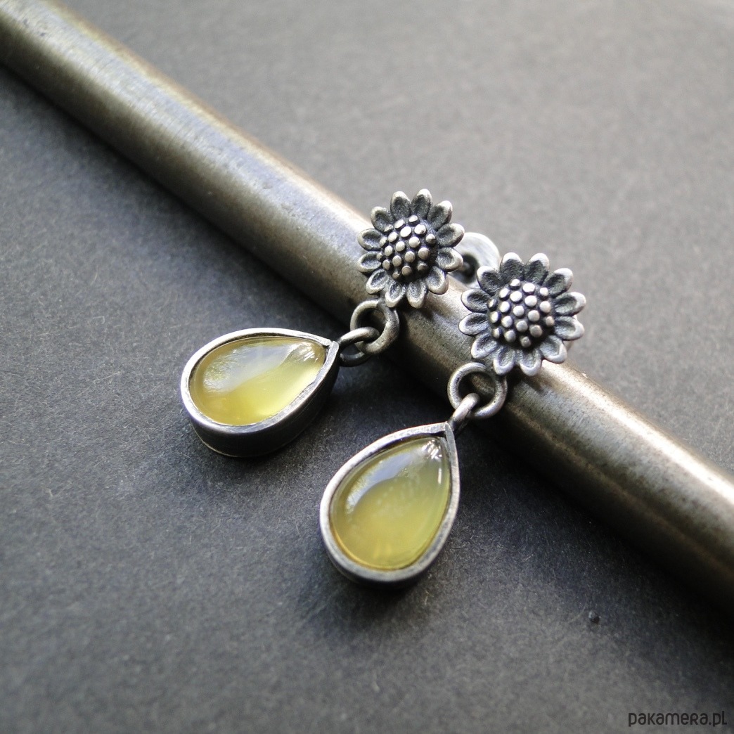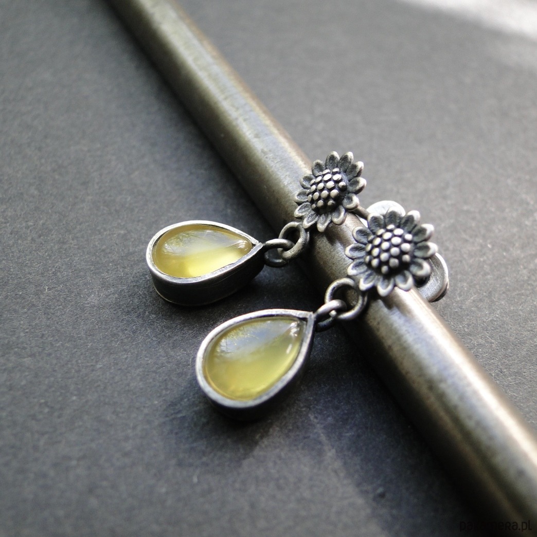 Urocze,niewielkie sztyfty wykonane ze srebra pr.925,oksydowane i szorowane. Kamienie: naturalne agaty gładkie dł.9mm. Kamienie oprawiłam w proste kasetki. Długość kolczyka- 2,5 cm. Nie moczyć w wodzie.
