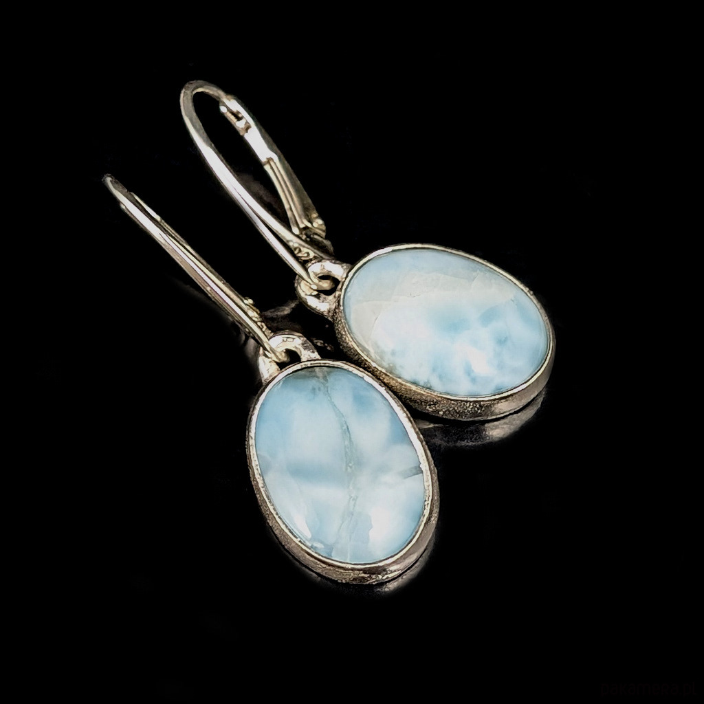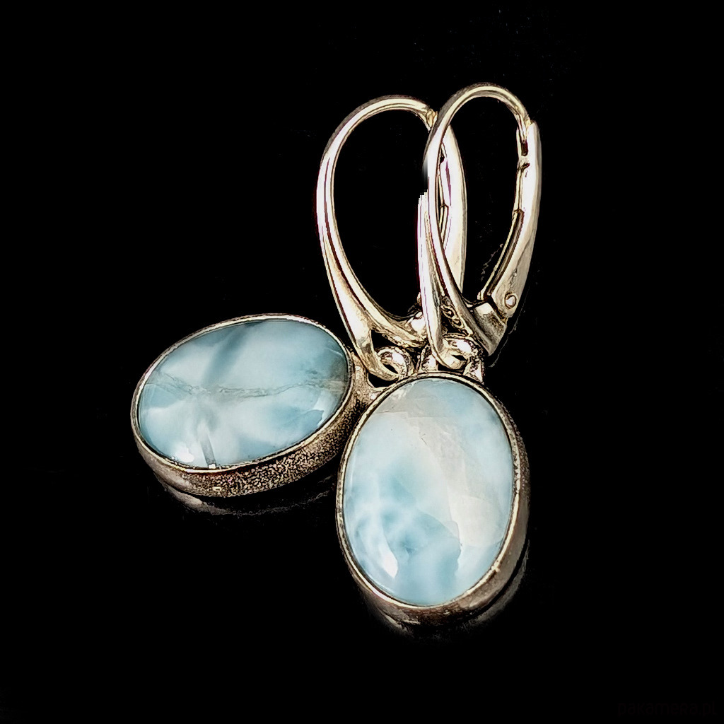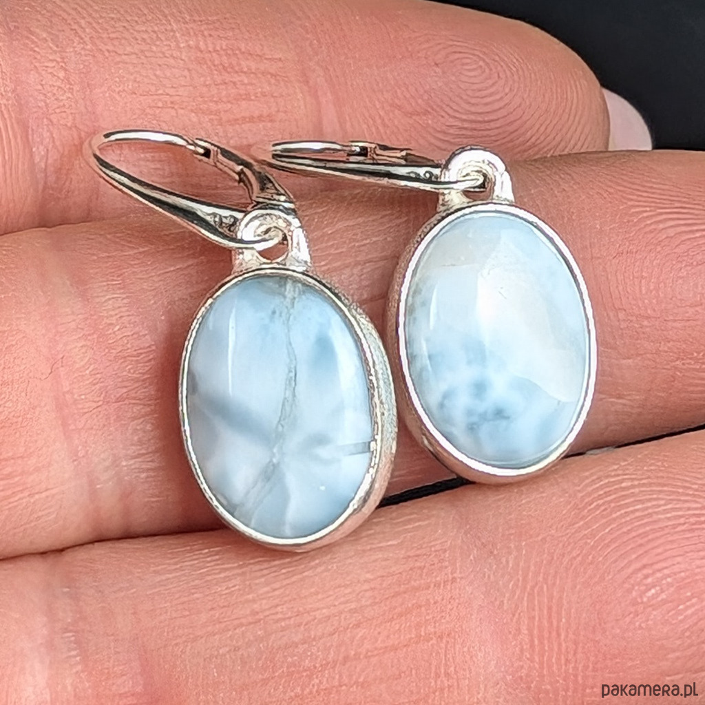 Kolczyki z pięknymi larimarami oprawionymi w srebro próby 925. Wymiary całej oprawy 15 x 11 mm. Długość z biglami 32 mm. Waga jednego 3,4 g. Zostaną zapakowane w ozdobne pudełeczko.