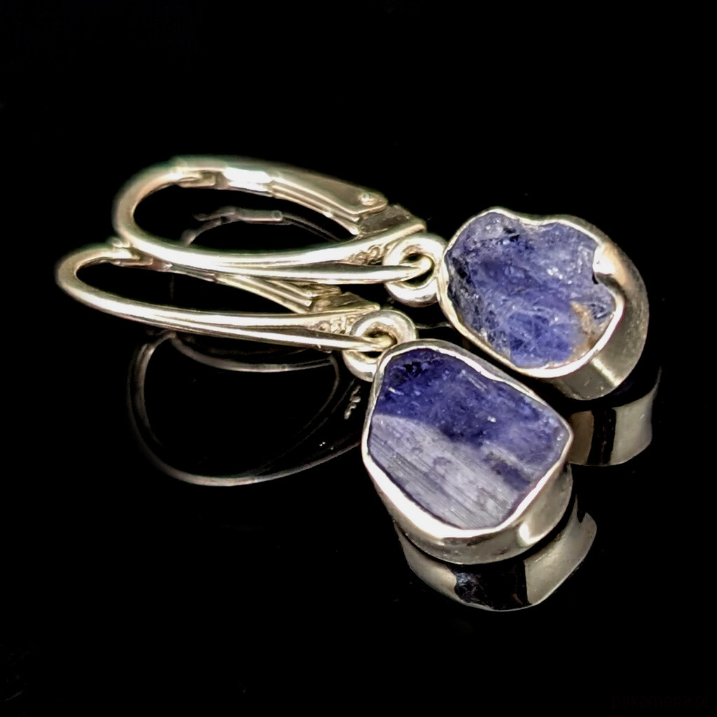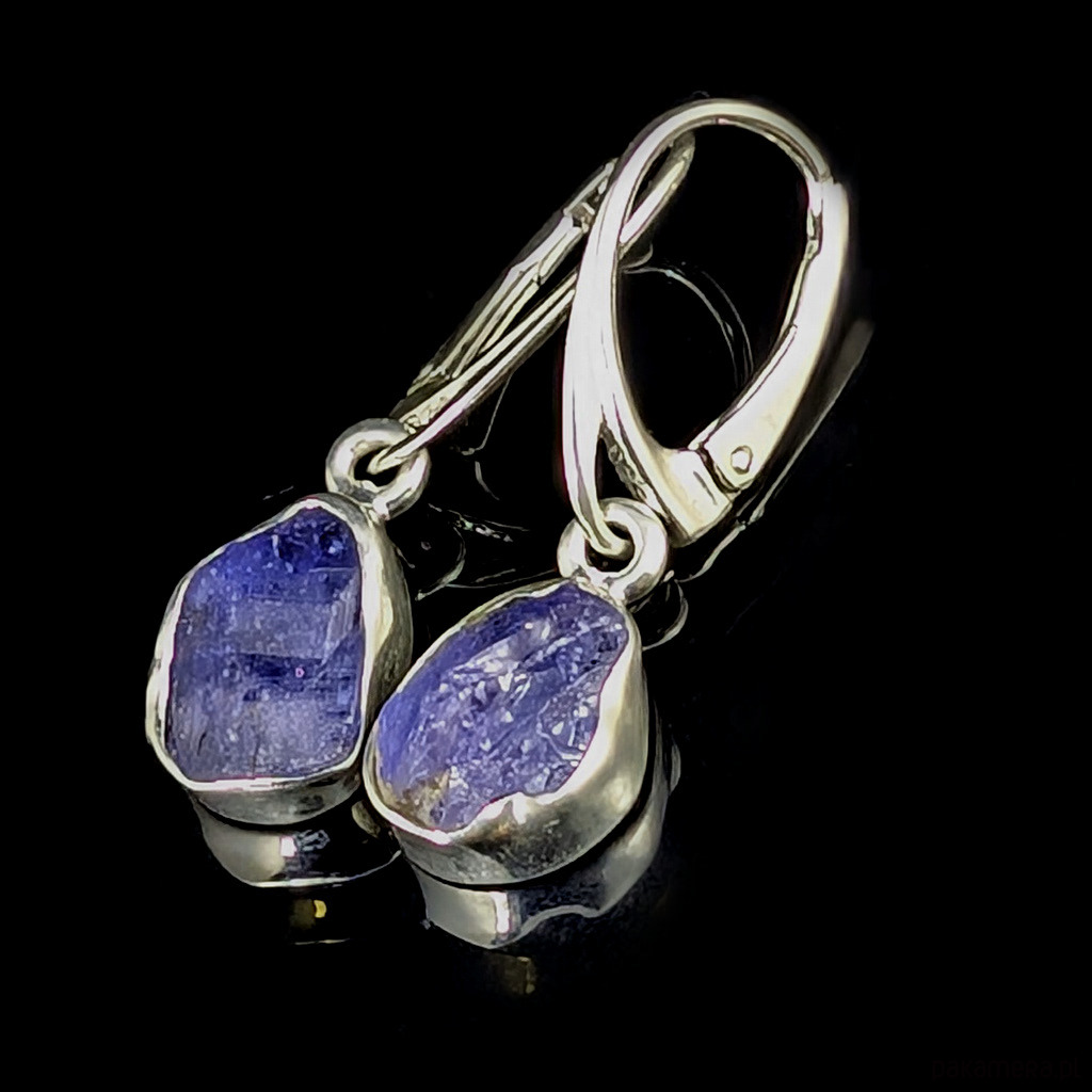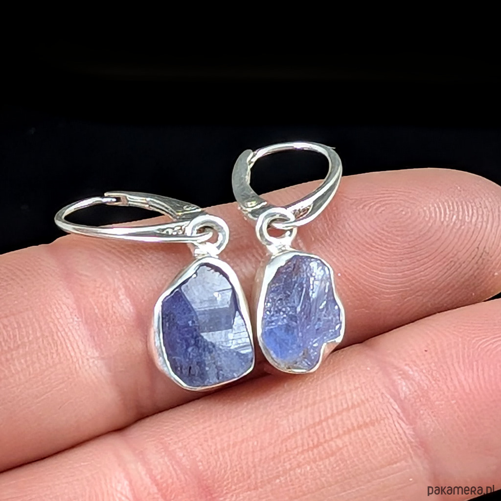 Kolczyki srebrne Surowe fiołkowe tanzanity