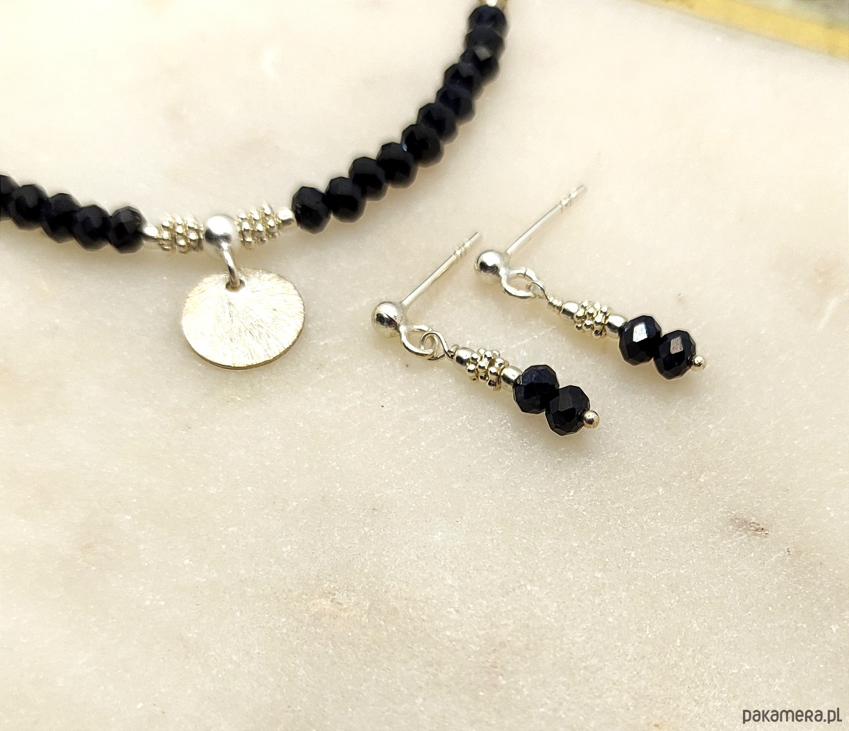 Szafiry - kamienie naturalne, fasetowane oponki o średnicy 4 mm, bardzo ciemny i nasycony granatowy kolor, efektowna powierzchnia odbijania światła