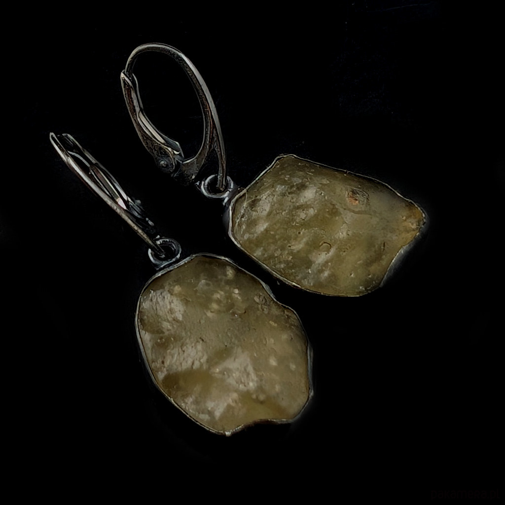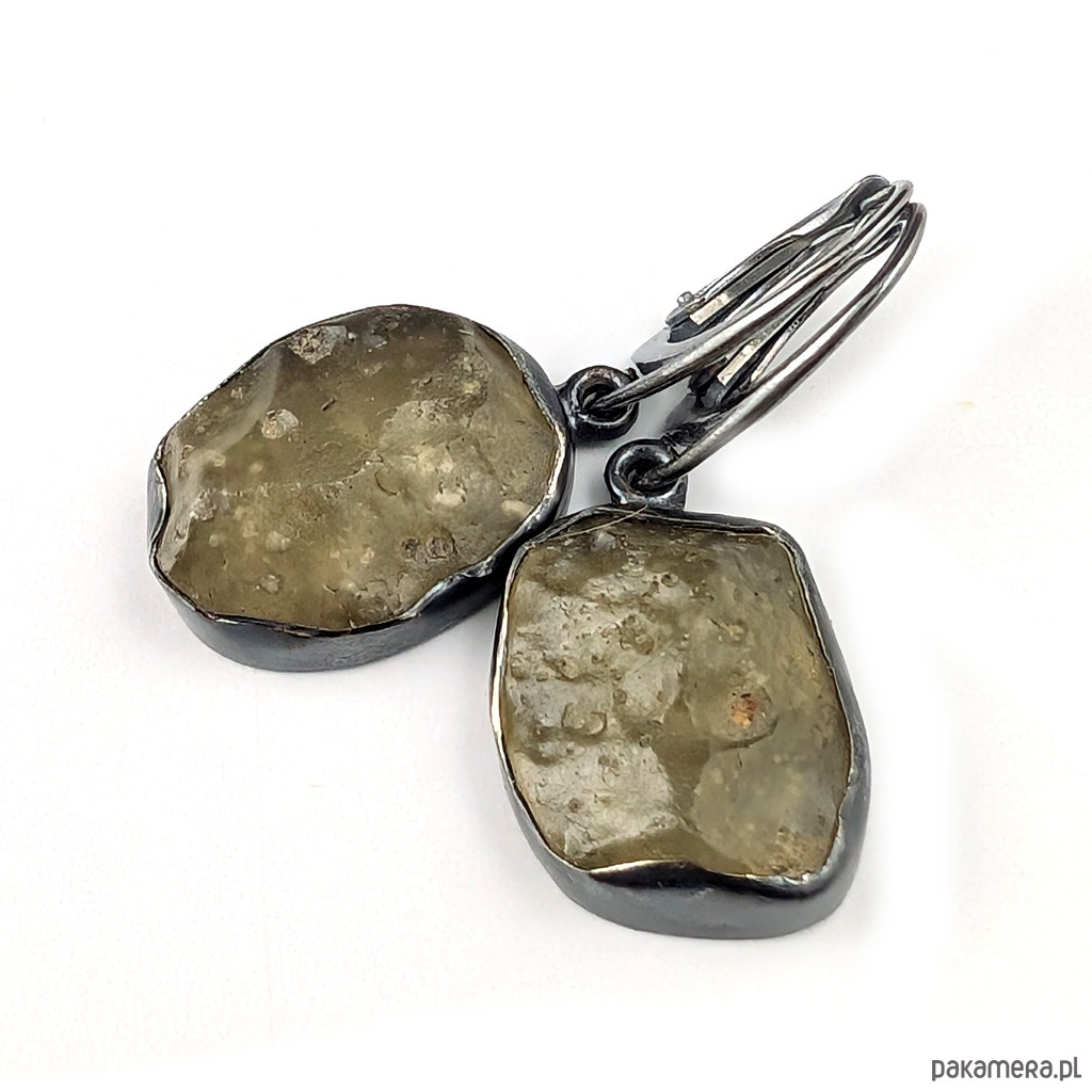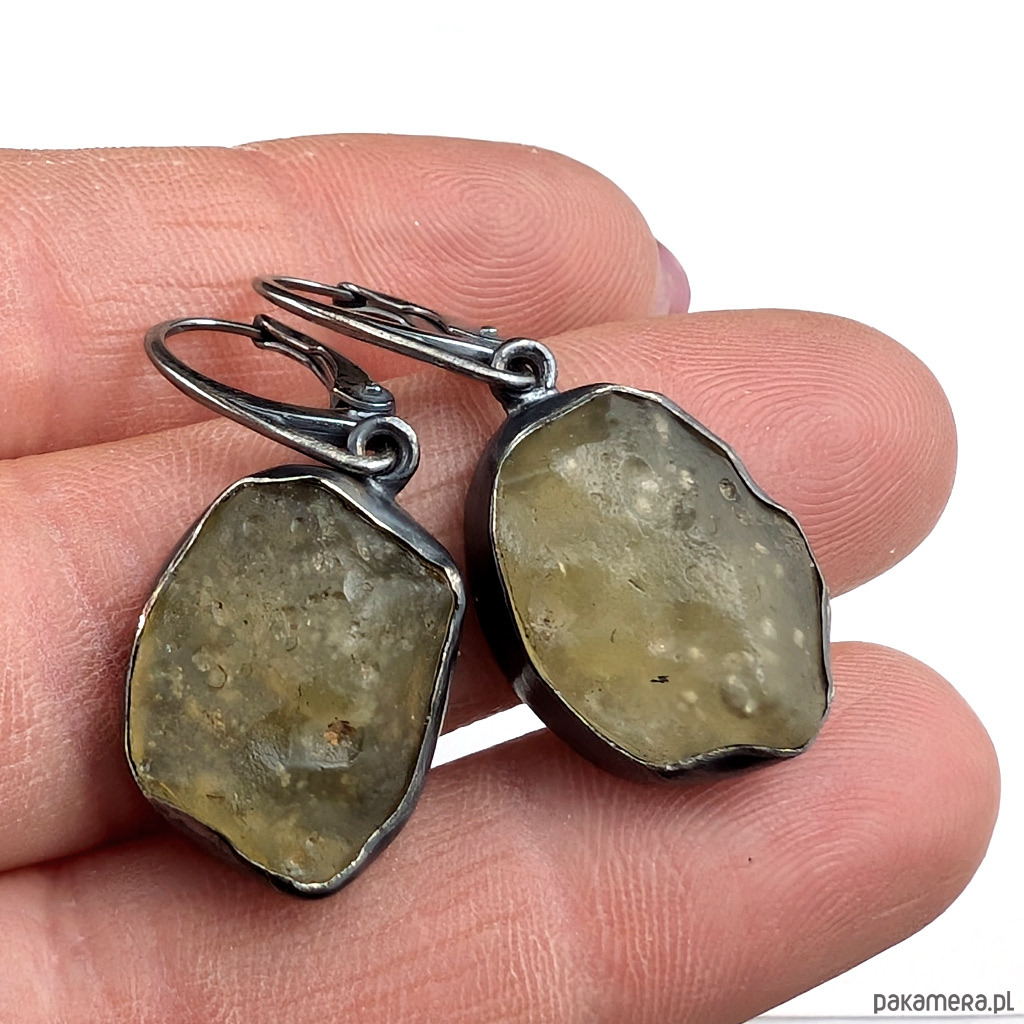 Oryginalne kolczyki, które zdobią piękne, surowe okazy unikalnego szkła libijskiego. Klasyczna oprawa srebra próby 925. Waga jednego kolczyka 3,8 grama Wymiary całej oprawy 18 x 14 mm. Długosć z biglami angielskimi 36 mm. Kolczyki zostaną zapakowane w ozdobne pudełeczko.