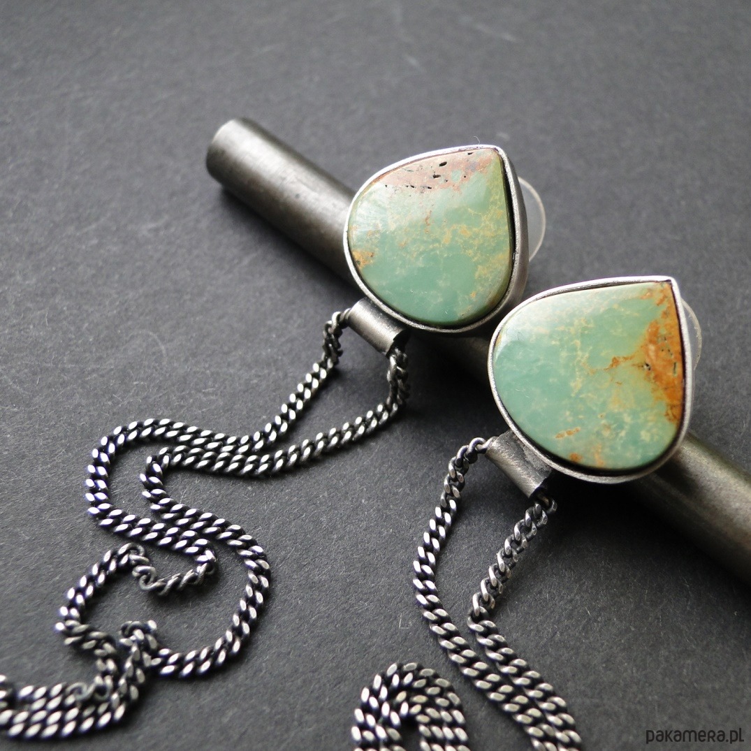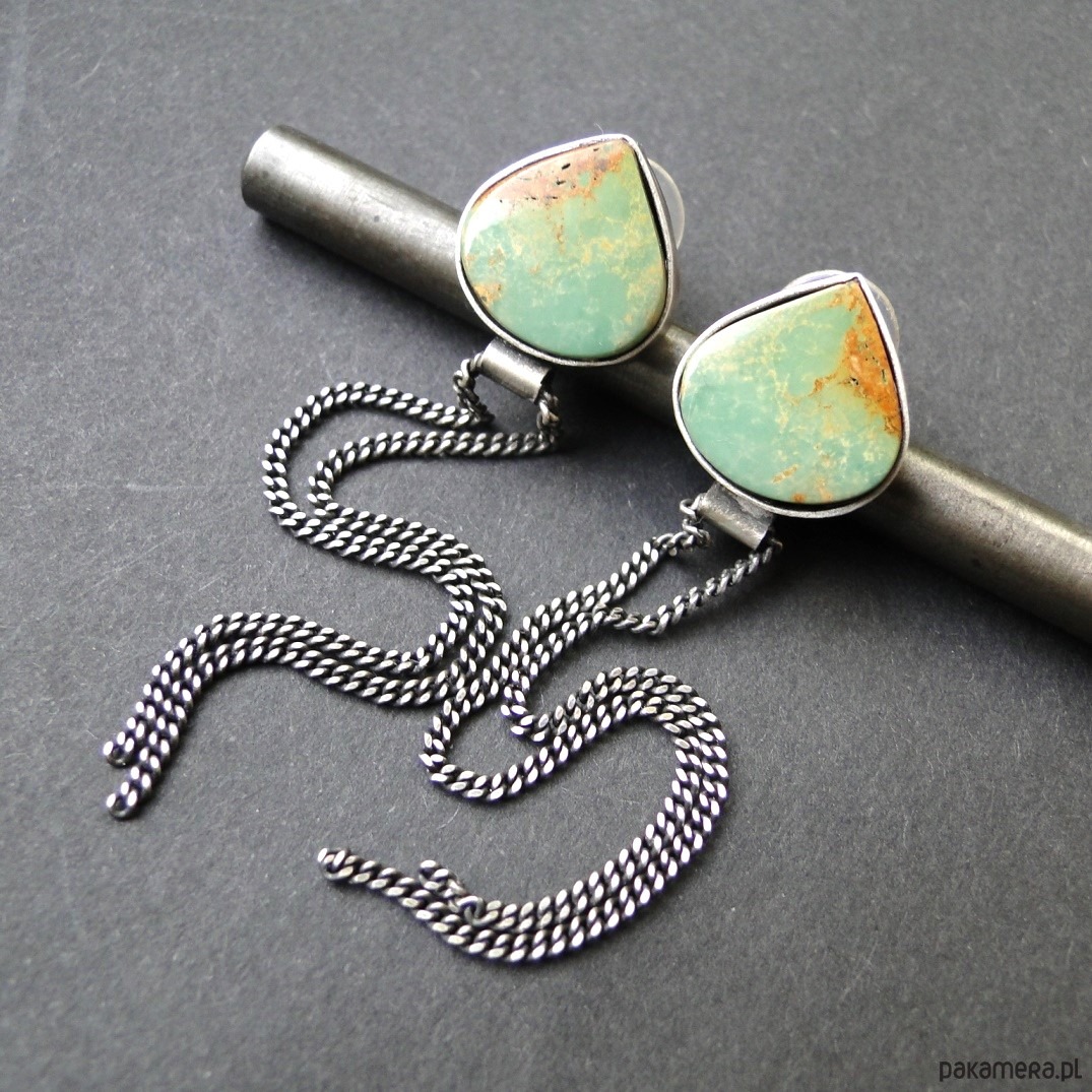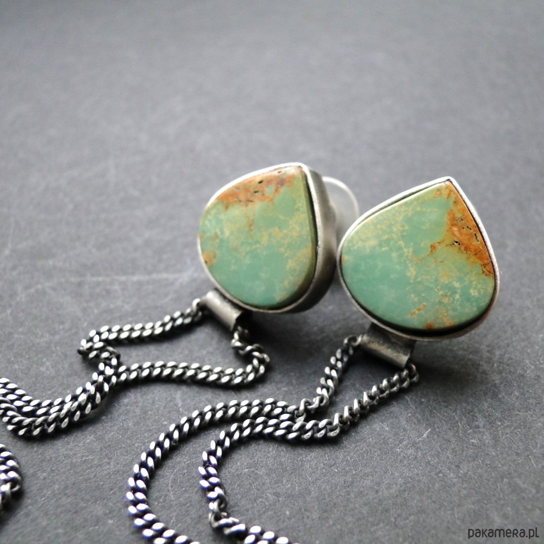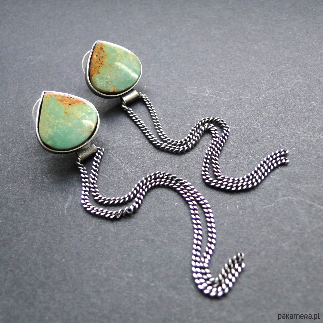 Surowe kolczyki w pojedynczym egzemplarzu. Srebro 930,oksydowane i szorowane. Piękne naturalne turkusy gładkie o wym. 15x15 mm. Długie chwosty ze srebra. Proste ramki na kamień, pełne z tyłu. Zapięcia na sztyfty. Zatyczki silikonowe ze srebrnym wkładem, dobrze trzymają kolczyk przy uchu.
