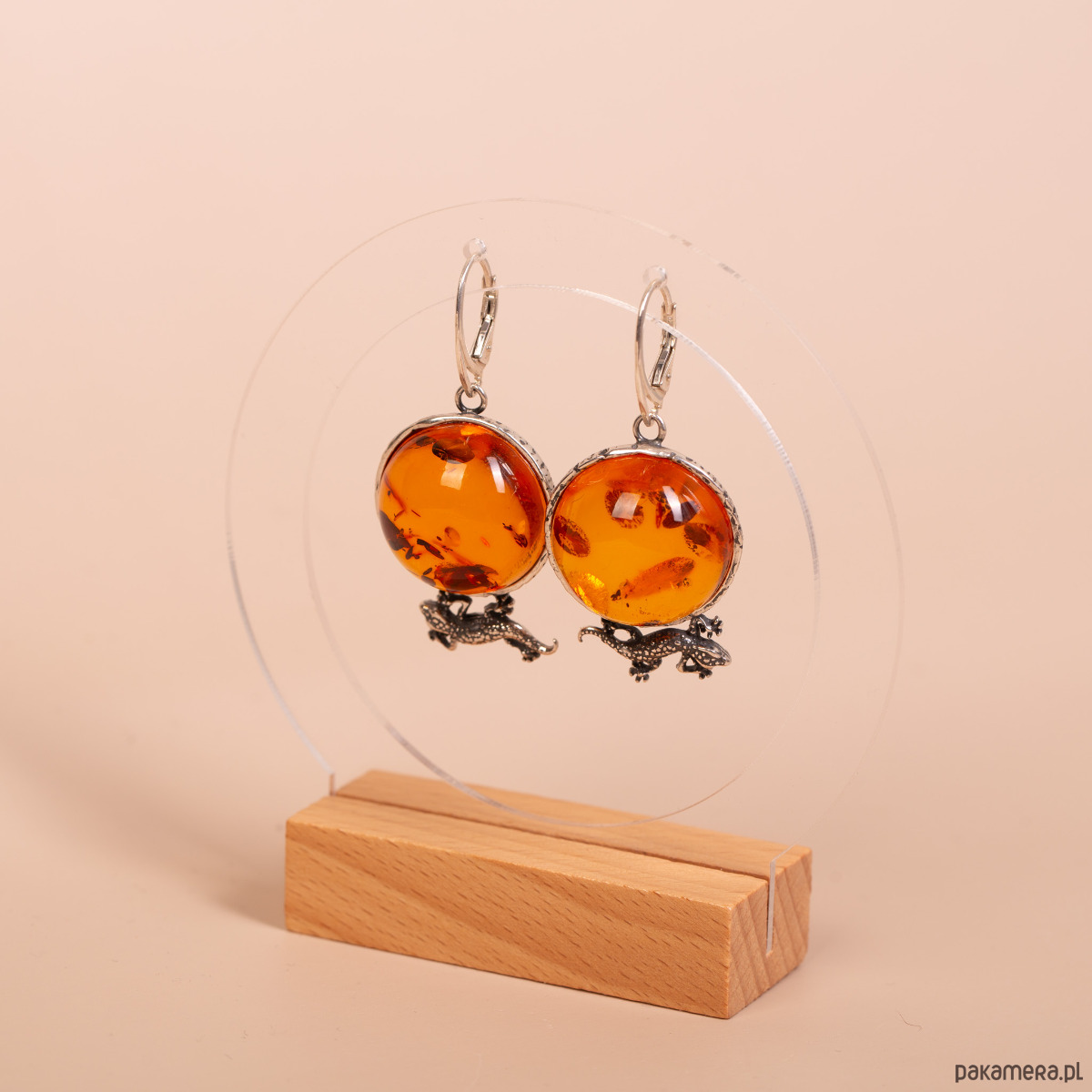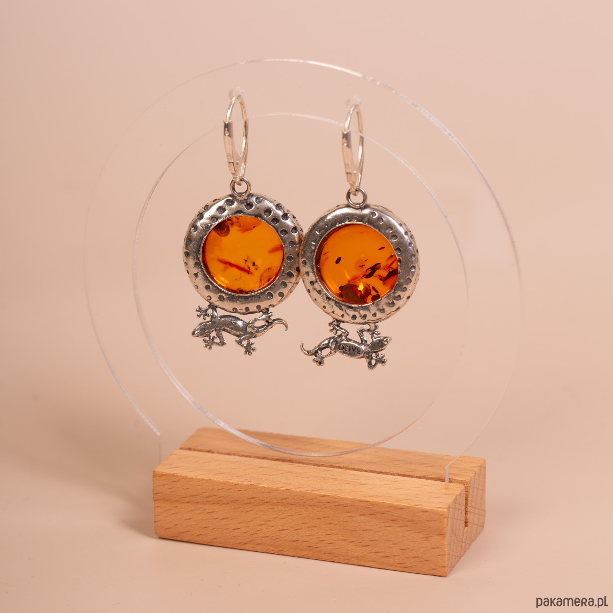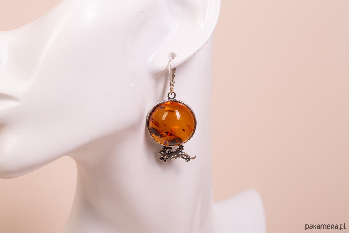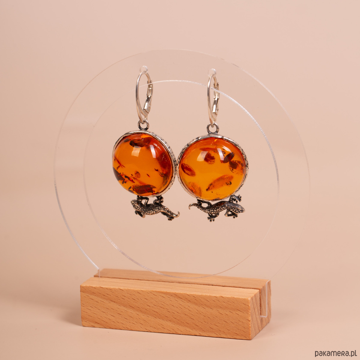 Kolczyki srebrne z bursztynem bałtyckim jaszczurki