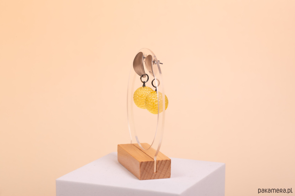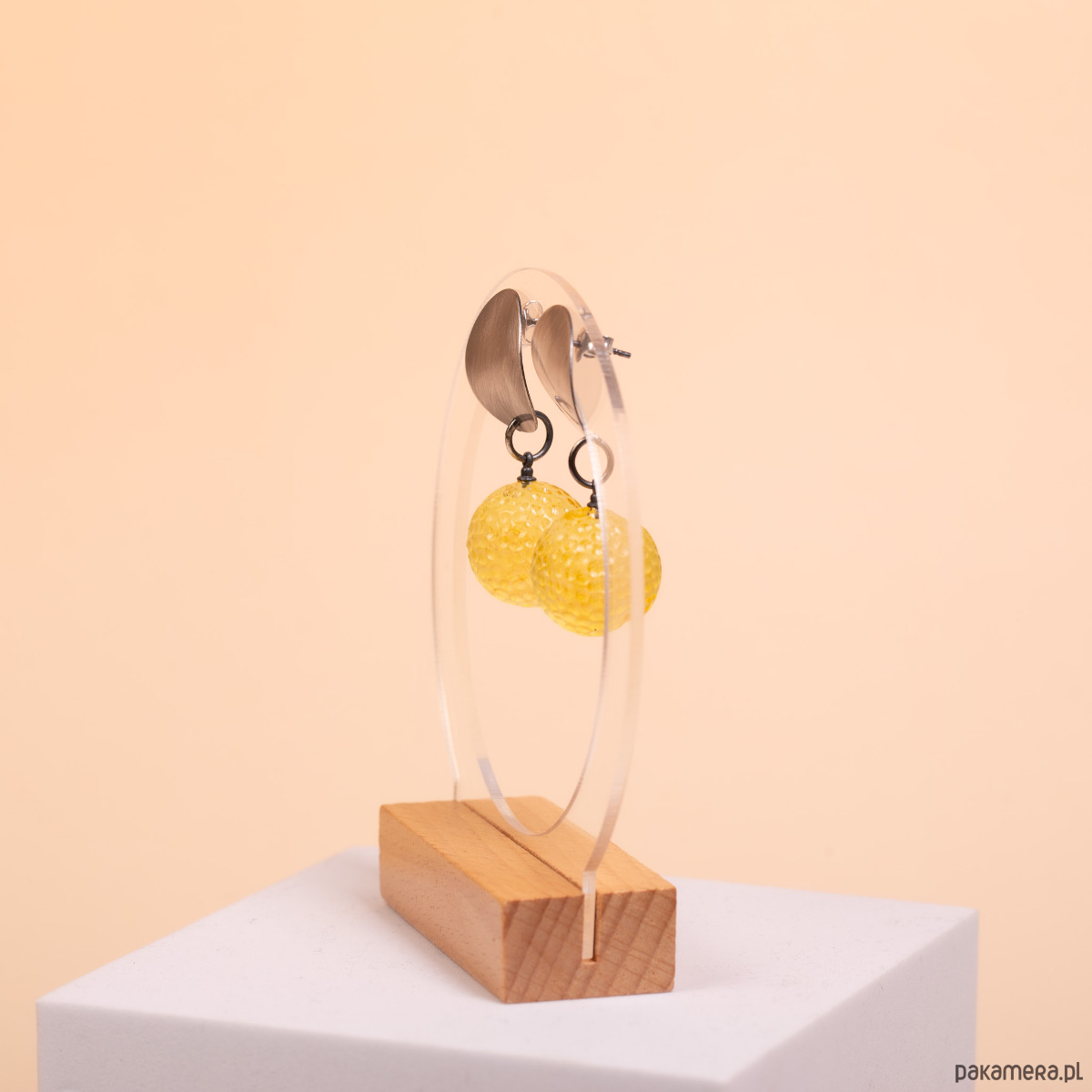 Zalety i przeznaczenie: Wyraziste, ale lekkie wizualnie kolczyki, które ożywiają stylizację i przyciągają wzrok kolorem. Idealne dla osób lubiących nowoczesną biżuterię z nutą natury. Zapięcie na sztyft zapewnia wygodę i stabilność podczas noszenia.