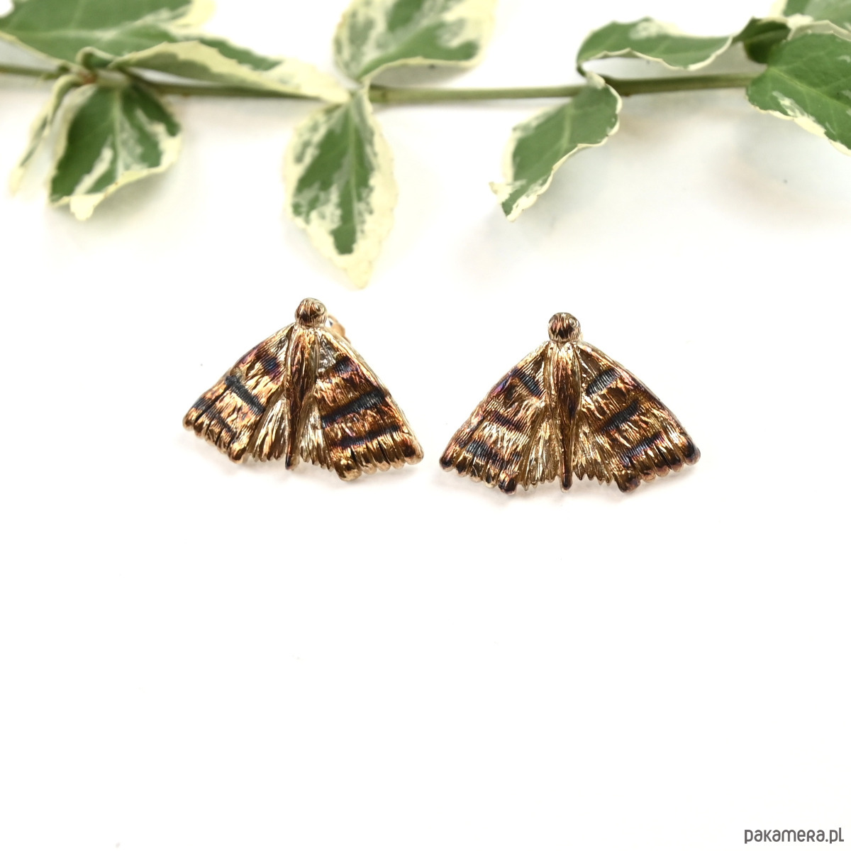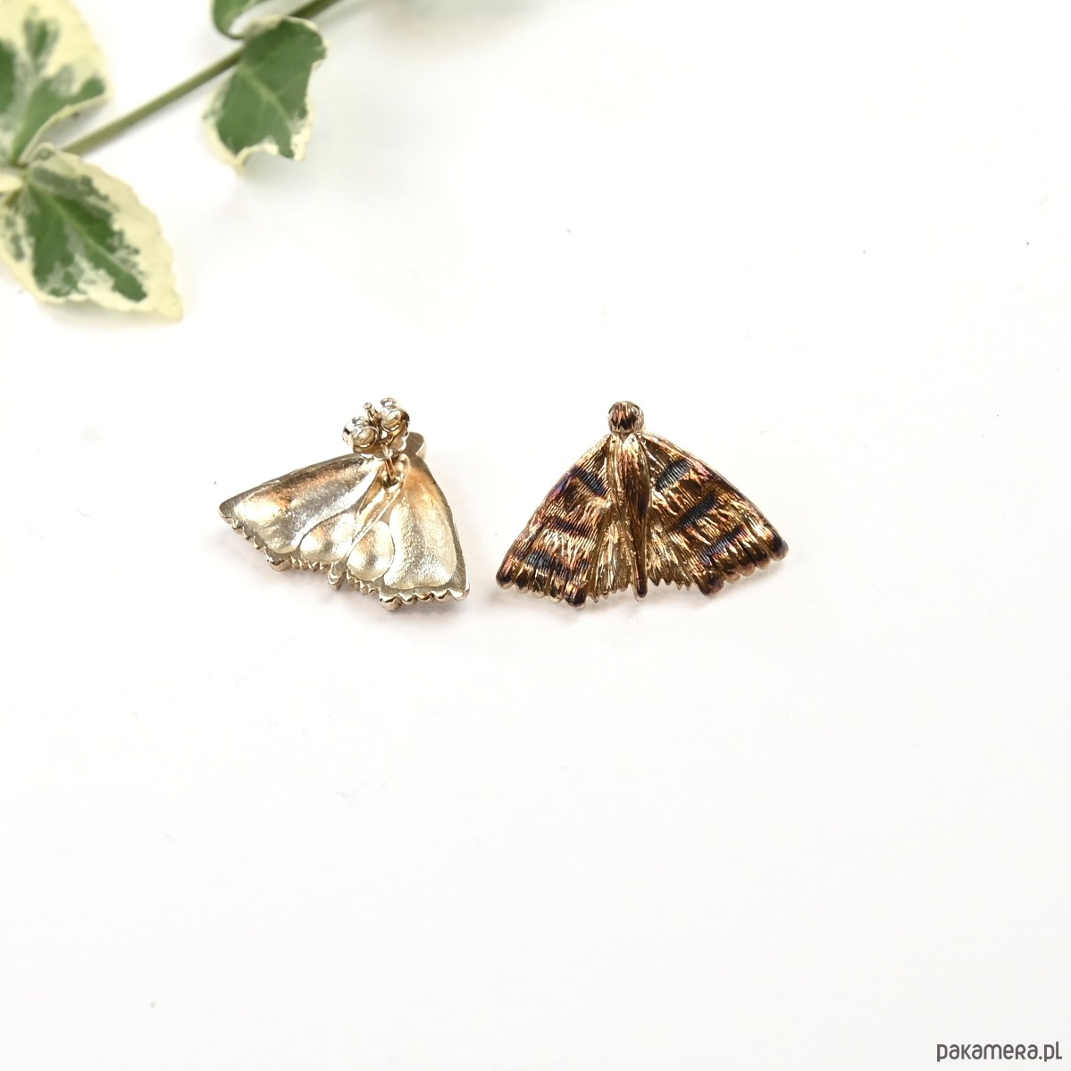 Kolczyki srebrne z Ćmami na sztyftach brązowe