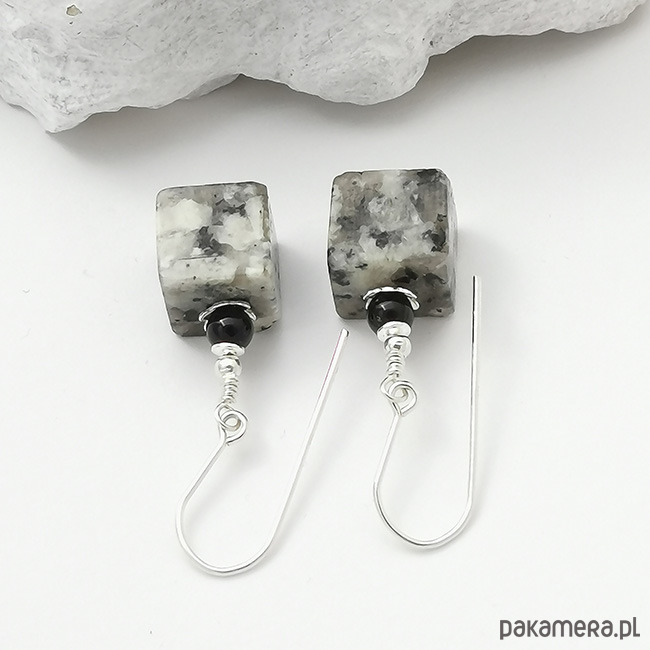 Klasyczne kolczyki z marmurem - kostki (10mm) i onyksem (4mm).