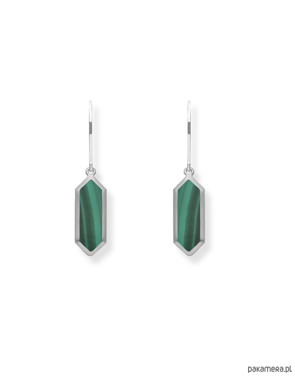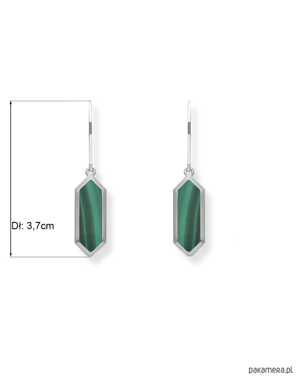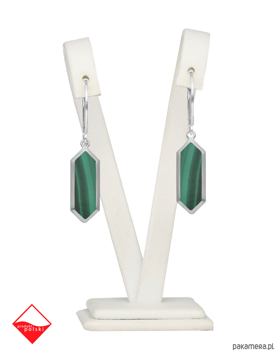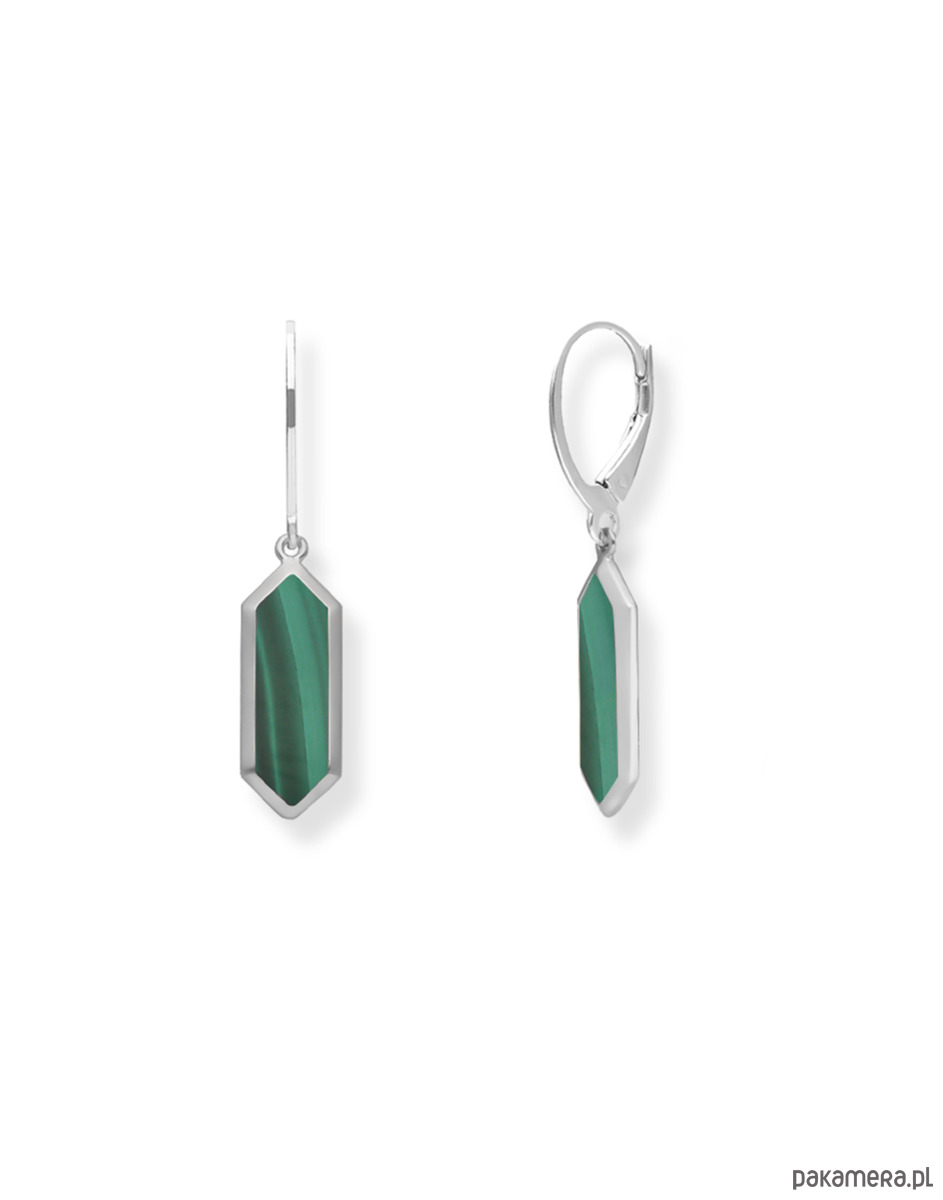 Kolczyki srebrne , rodowane z malachitem naturalnym w sześciokątnej ramce na zapięciu angielskim, to piękny i elegancki dodatek do każdej stylizacji. Wykonane są z wysokiej jakości srebra próby 925,