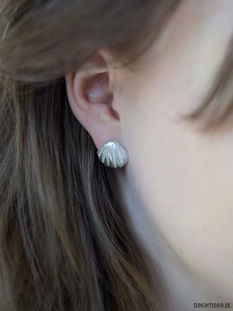 Kolczyki srebrne z muszelkami białymi na sztyftach