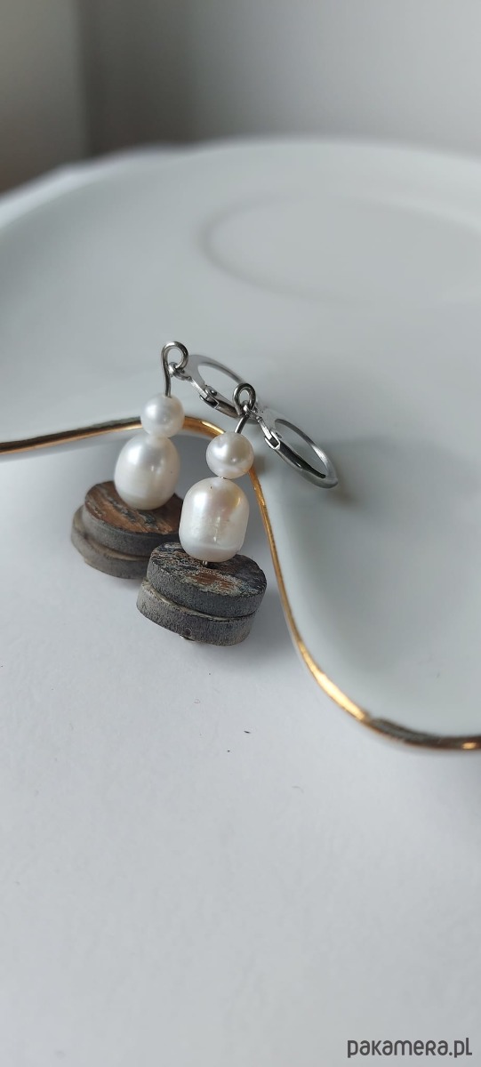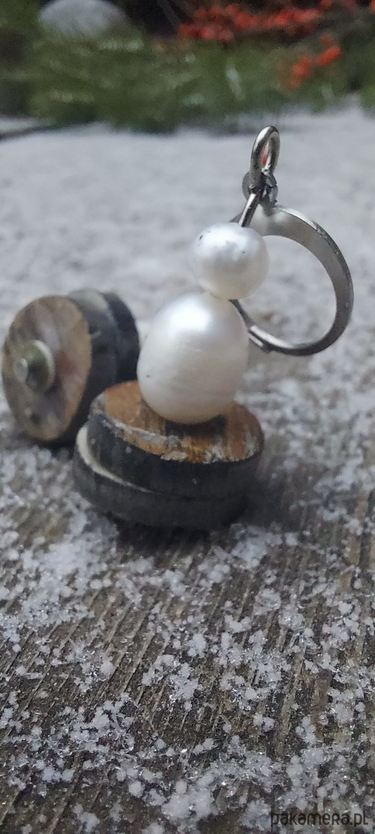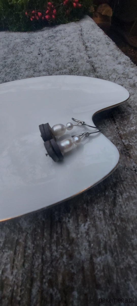 Kolczyki z muszlą szarą i rzeczną perłą, długość około 4 cm