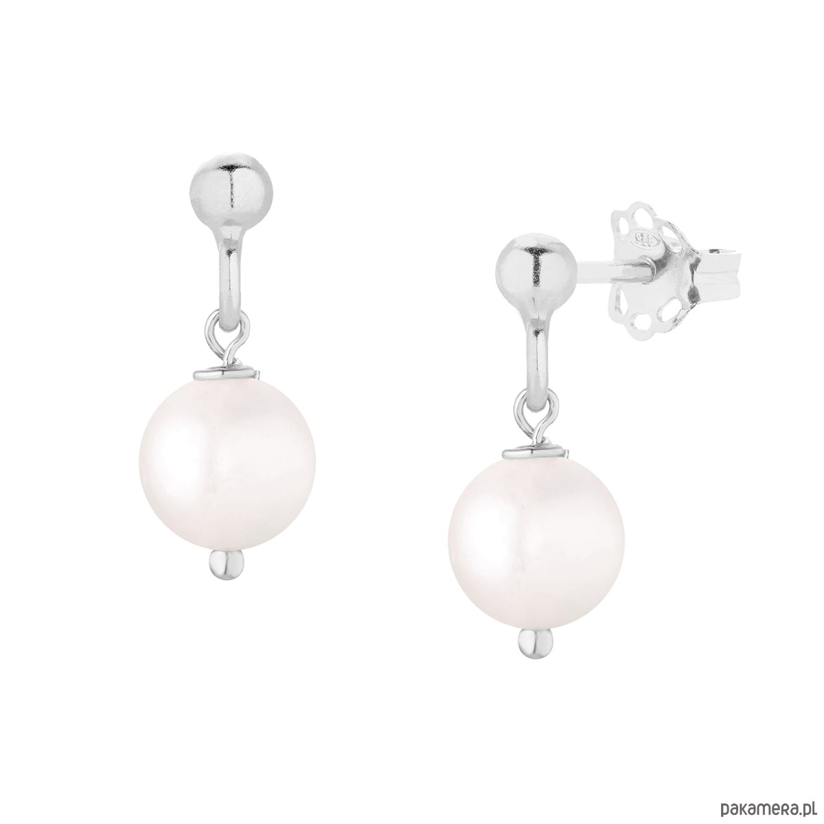 Klasyczne, eleganckie kolczyki ze srebra próby 925 z naturalną perłą.