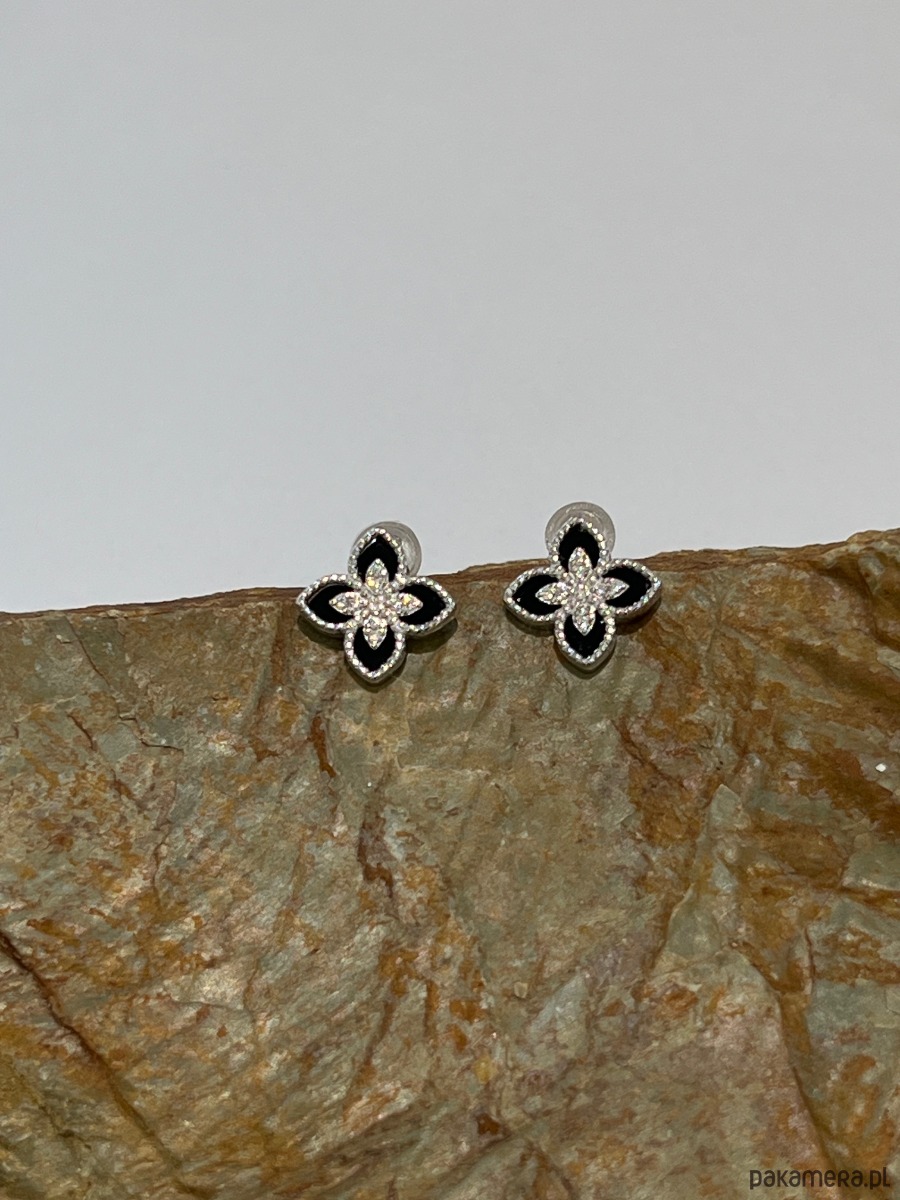 Kolczyki z onyksem i z cyrkoniami - srebro rodowane.