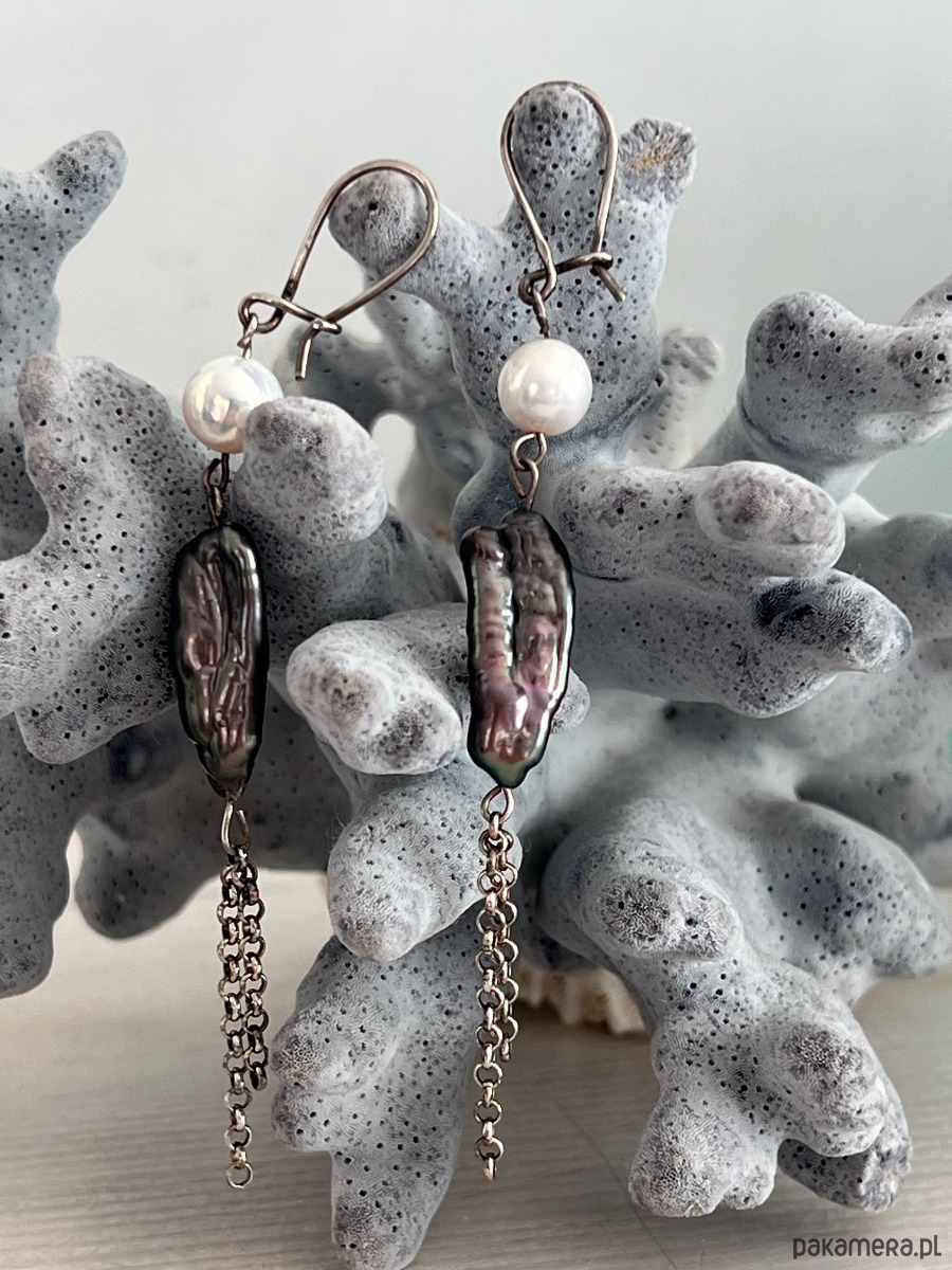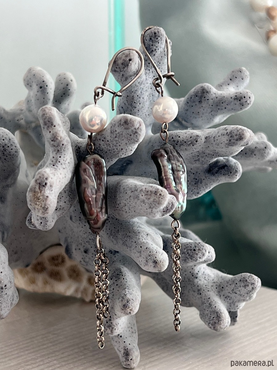 Te eleganckie, ręcznie wykonane kolczyki łączą w sobie subtelne piękno pereł i macicy perłowej i z prostotą srebrnych elementów, tworząc wyjątkowy dodatek, który przyciągnie uwagę i doda blasku każdej stylizacji. Zwłaszcza Klasycznej.
