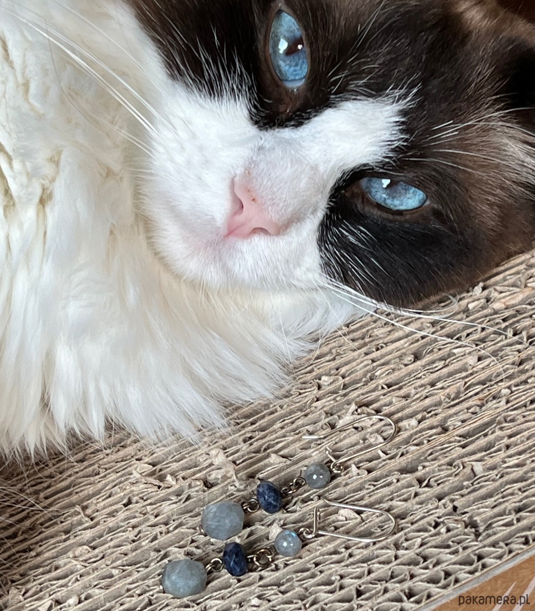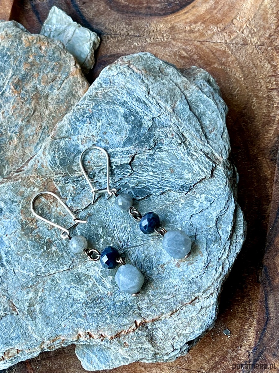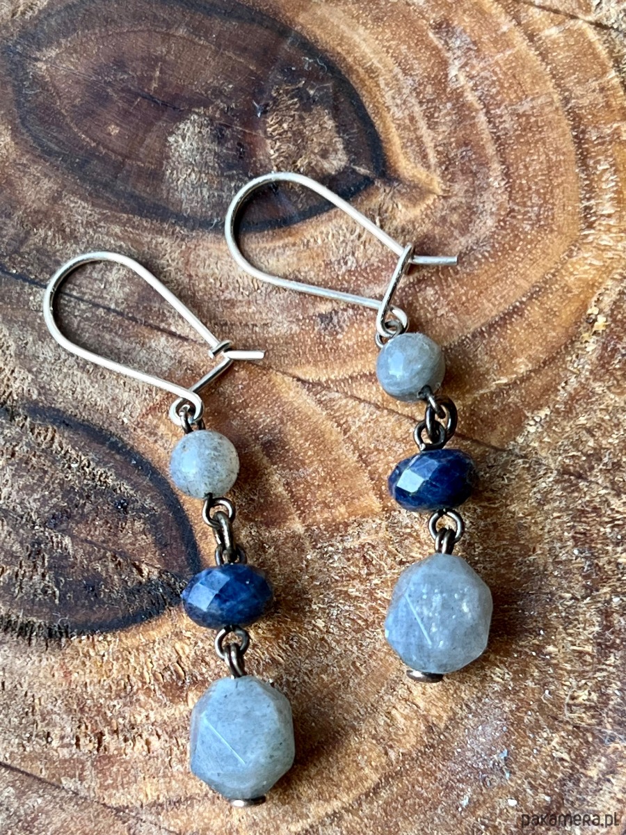 Kamienie Naturalne: szafir, kamień księżycowy, labradoryt .Kolczyki zdobią kamienie o różnej wielkości i barwie: