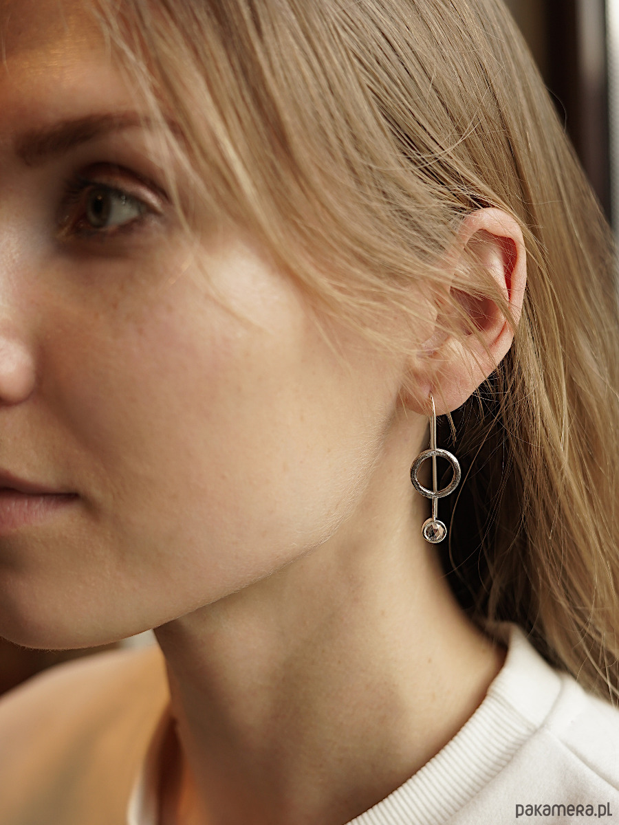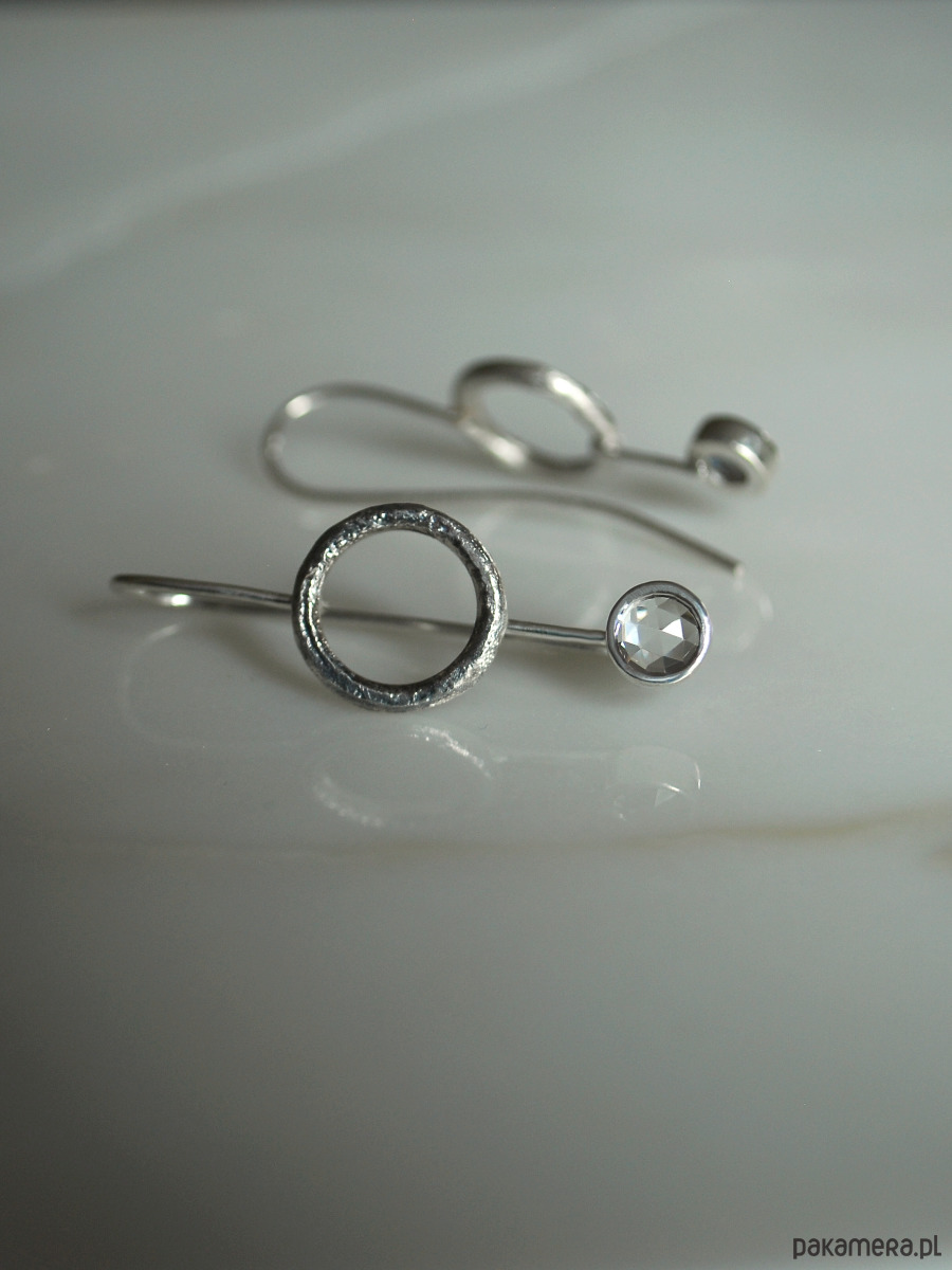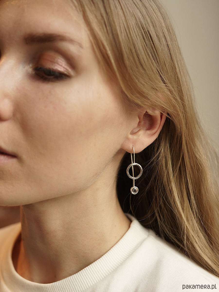 Bezbarwne, przejrzyste topazy o średnicy 6 mm zestawiłam, na zasadzie kontrastu, z chropowatą i oksydowaną powierzchnią. Kolczyki doskonale komponują się zarówno z wieczorową kreacją oraz dżinsami i prostym swetrem. Kolczyki w całości zostały wykonane ręcznie ze srebra próby 925. Całkowita długość kolczyków to 4,3cm. Wyrób prześlę w eleganckim czarnym pudełeczku z logo.