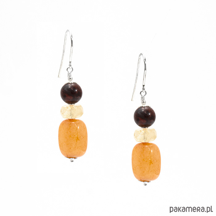 Klasyczne kolczyki z pomarańczowym kwarcem i innymi minerałami.