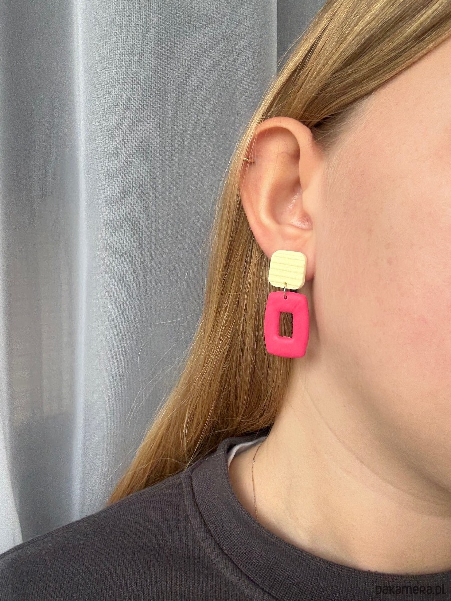 Ręcznie wykonane kolczyki o całkowitej wysokości 4 cm, które są definicją nowoczesnej odwagi i koloru. Bardzo lekkie, a dzięki zastosowaniu sztyftów ze stali chirurgicznej są bezpieczne dla wrażliwych uszu. To idealny wybór dla osób, które nie boją się szalonych połączeń kolorów.