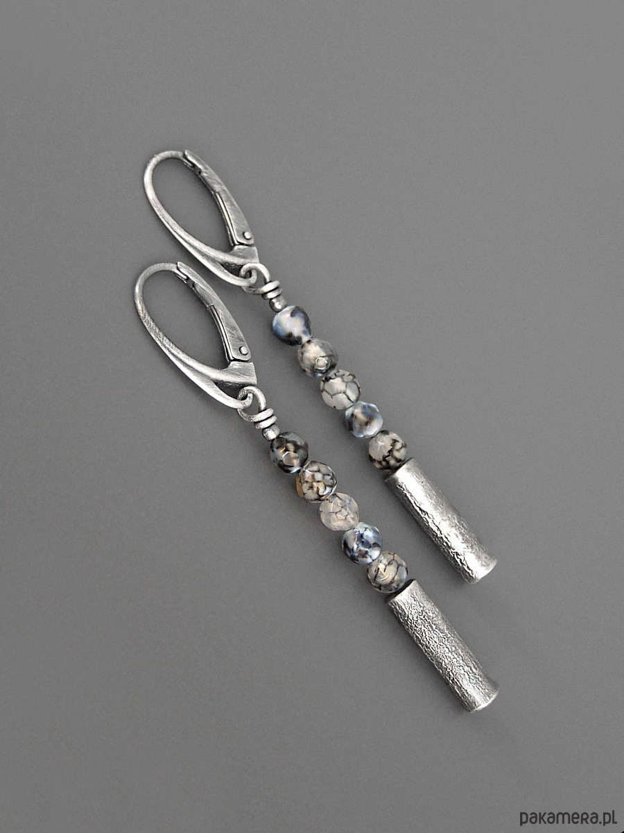 Kolczyki Stick, agat, srebro