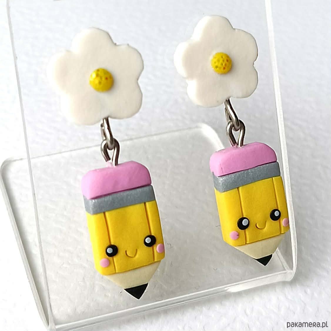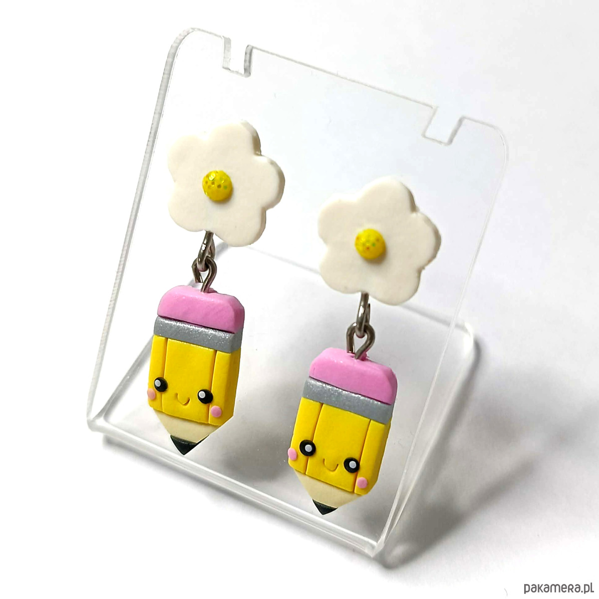 Wykonane ręcznie z gliny polimerowej, zachwycają świeżymi kolorami i subtelnymi detalami. Stokrotka dodaje lekkości i dziewczęcego uroku, a ołówek wprowadza kreatywny, szkolny klimat.