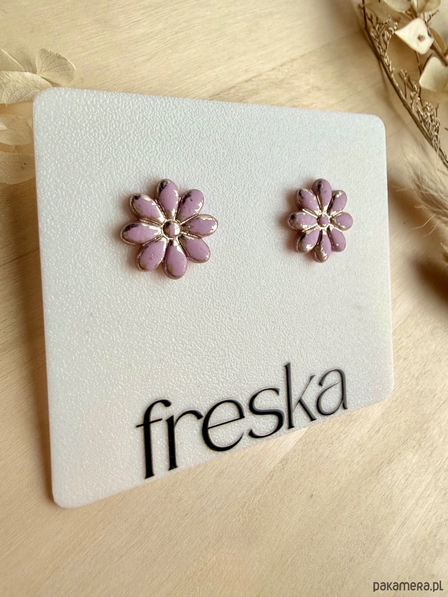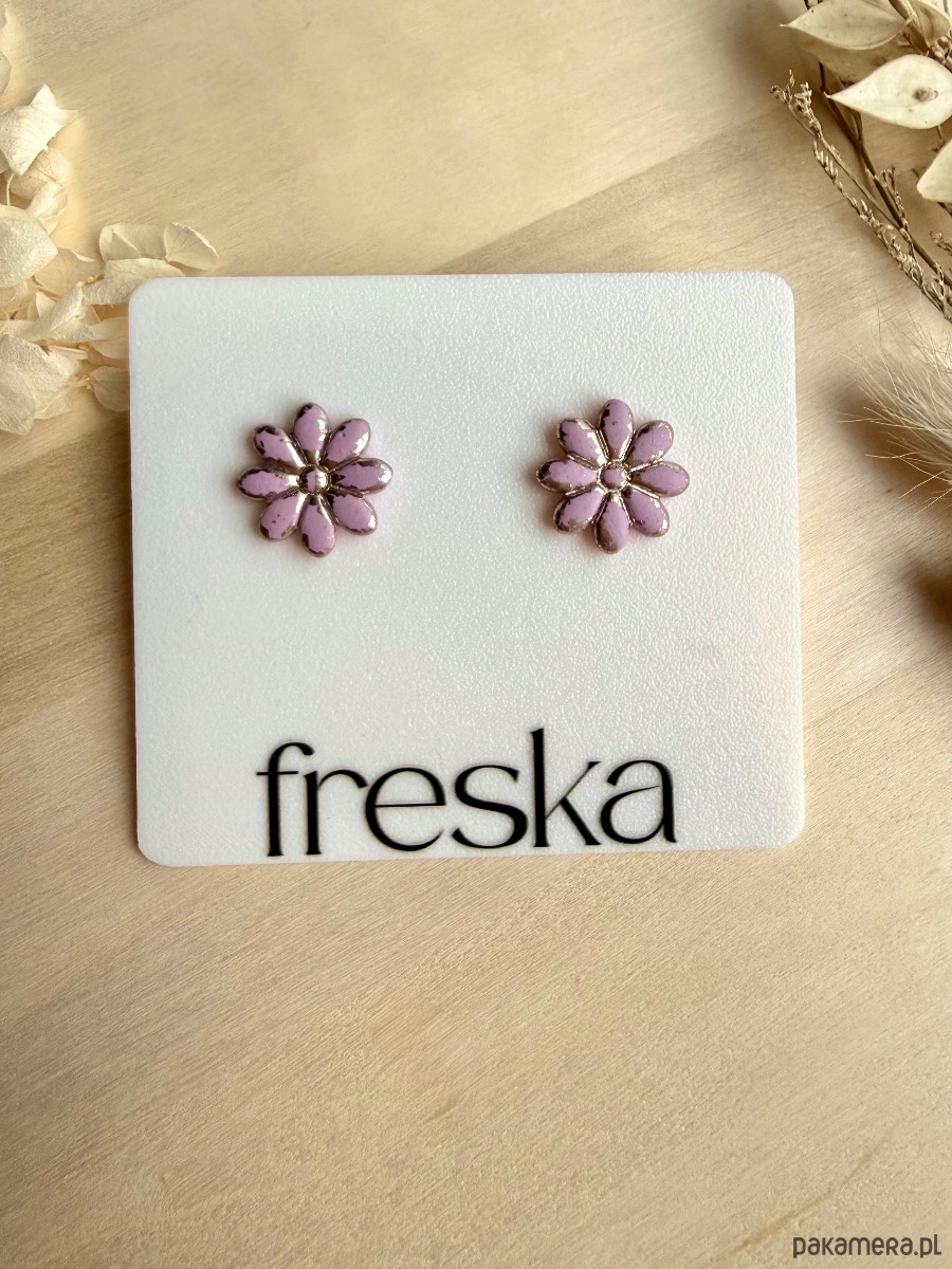 Kolczyki–stokrotki w odcieniu przydymionego różu dodają stylizacjom delikatnie romantycznego charakteru. Każdy płatek został obrysowany cienką, srebrną linią, dzięki czemu kwiatki subtelnie odbijają światło i wyglądają wyjątkowo elegancko.