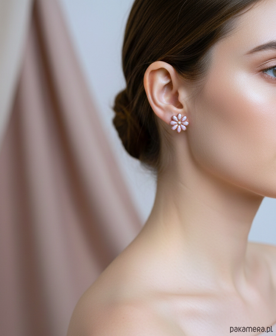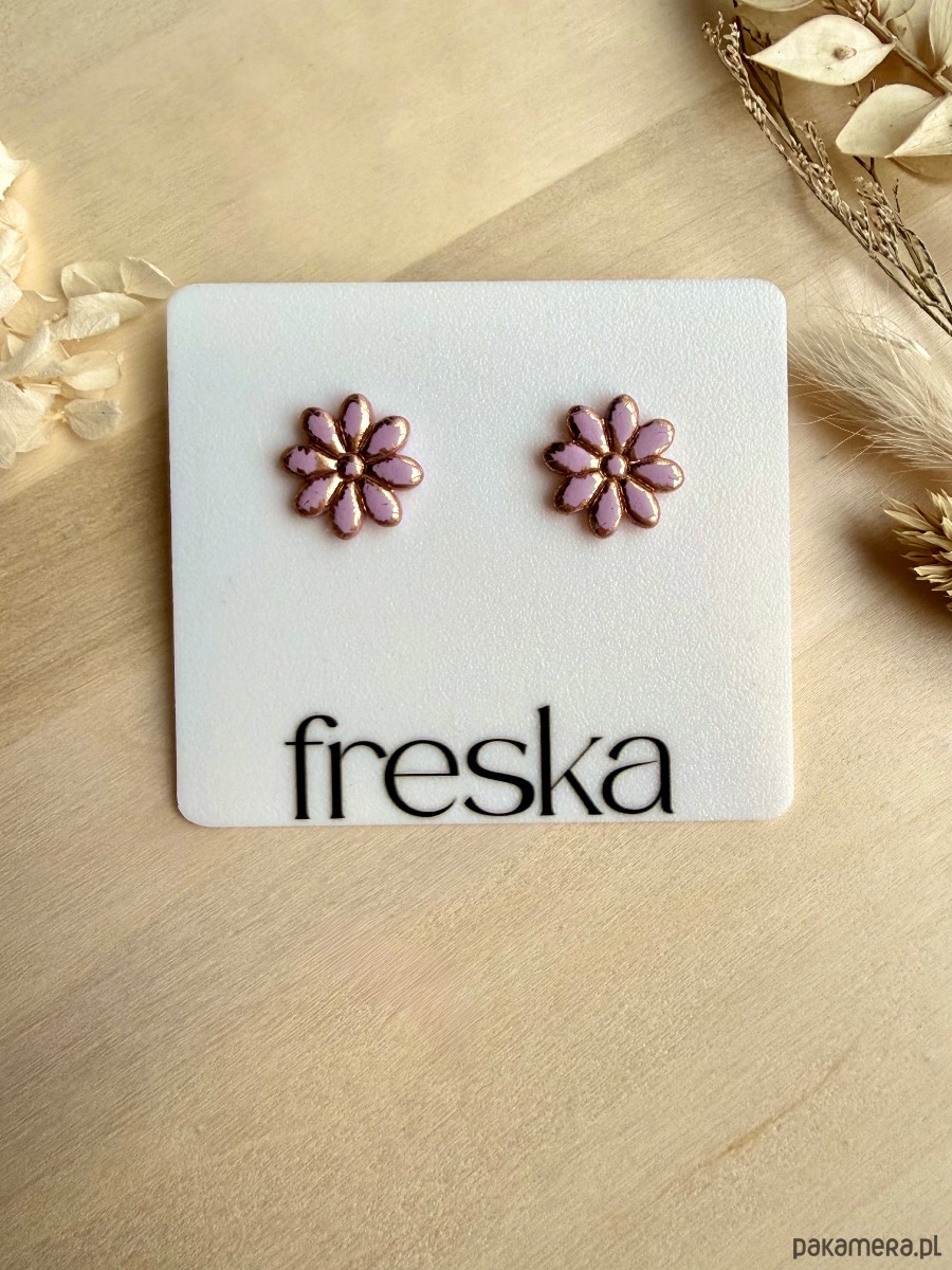 Kolczyki–stokrotki w odcieniu przydymionego różu dodają stylizacjom delikatnie romantycznego charakteru. Każdy płatek został obrysowany cienką, złotą linią, dzięki czemu kwiatki subtelnie odbijają światło i wyglądają wyjątkowo elegancko.