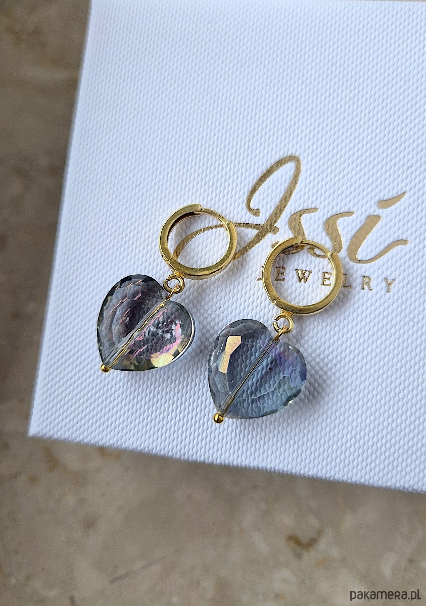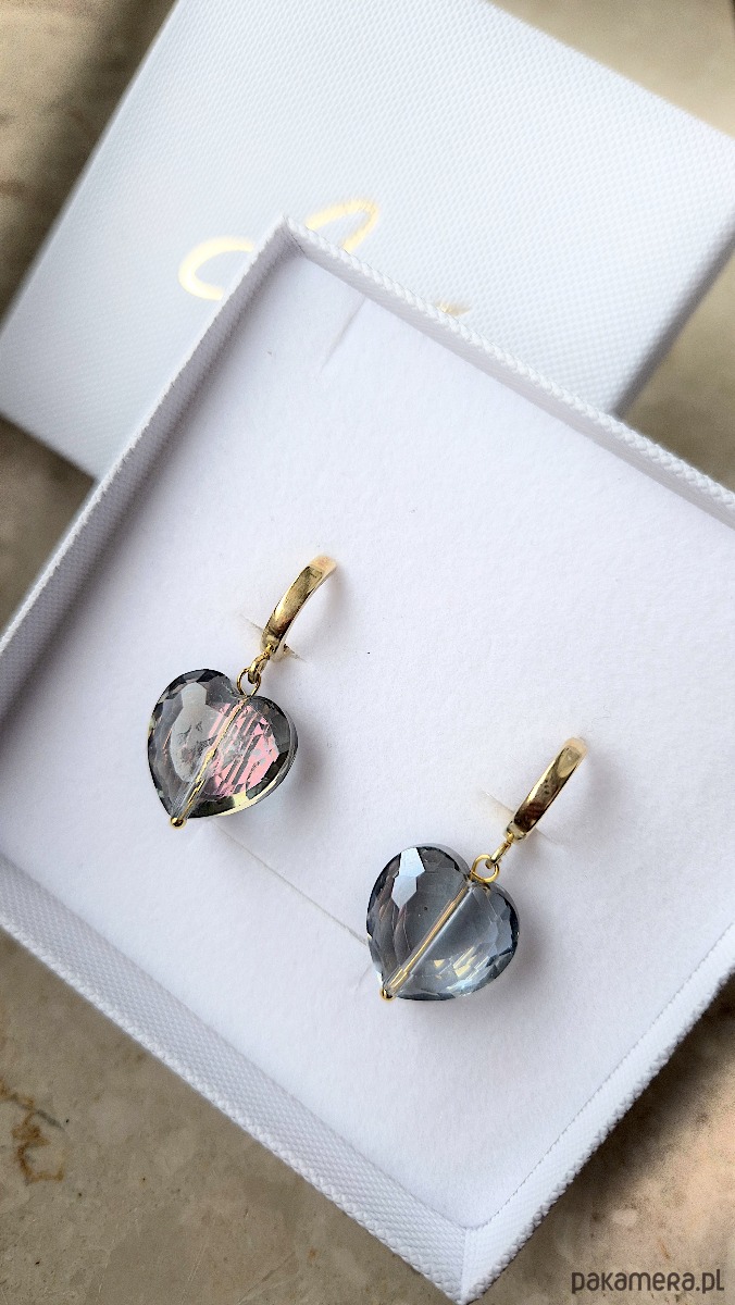 Kolczyki STORMY HEARTS- srebro 925 złocone 24K, Swarovski