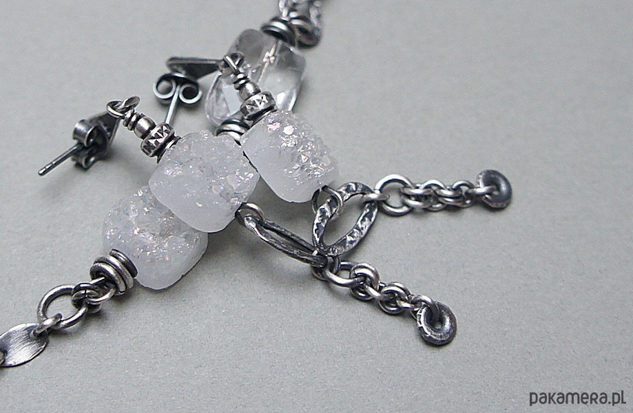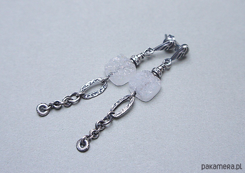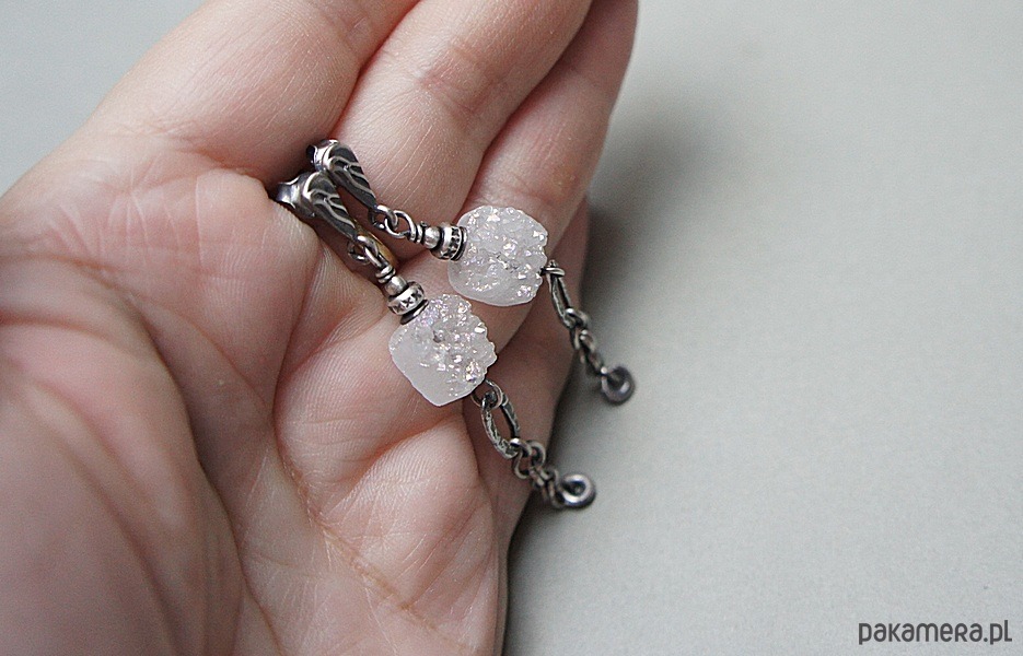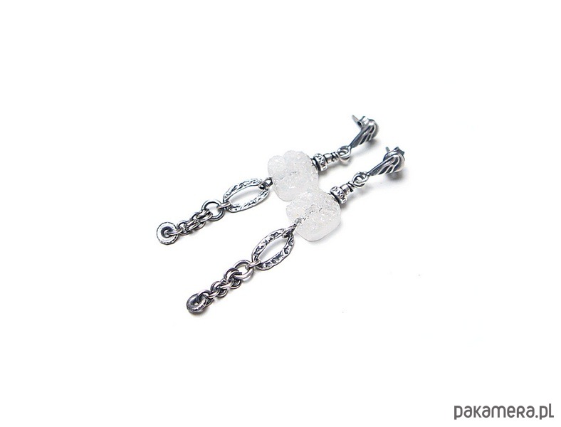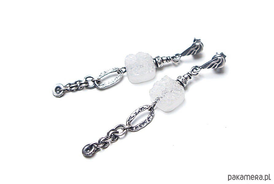 Kolczyki wykonane ze srebra [pr. 925 i 930] w połączeniu z pastylkami agatów z druzą [10mm - opalizująca powierzchnia]. Całość oksydowana i przetarta. Całkowita długość kolczyków 6,2cm. Biżuteria ozdobnie zapakowana. Do kompletu można dokupić bransoletkę dostępną w naszej galerii - przykładowe zdjęcia.