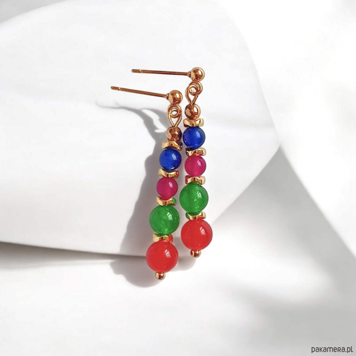 Kolczyki wykonane z jadeitu w soczystych odcieniach (6 i 4mm) oraz przekładek ze złotego hematytu.
