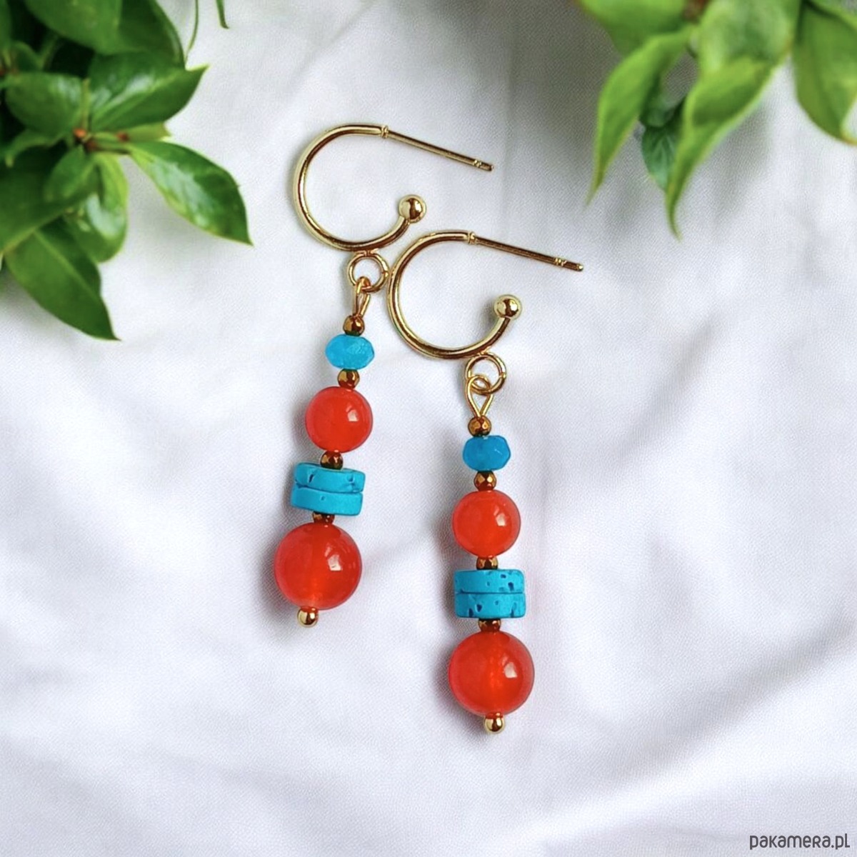 Kolczyki SUMMER collection : 5cm : turkusowo -pomarańczowe