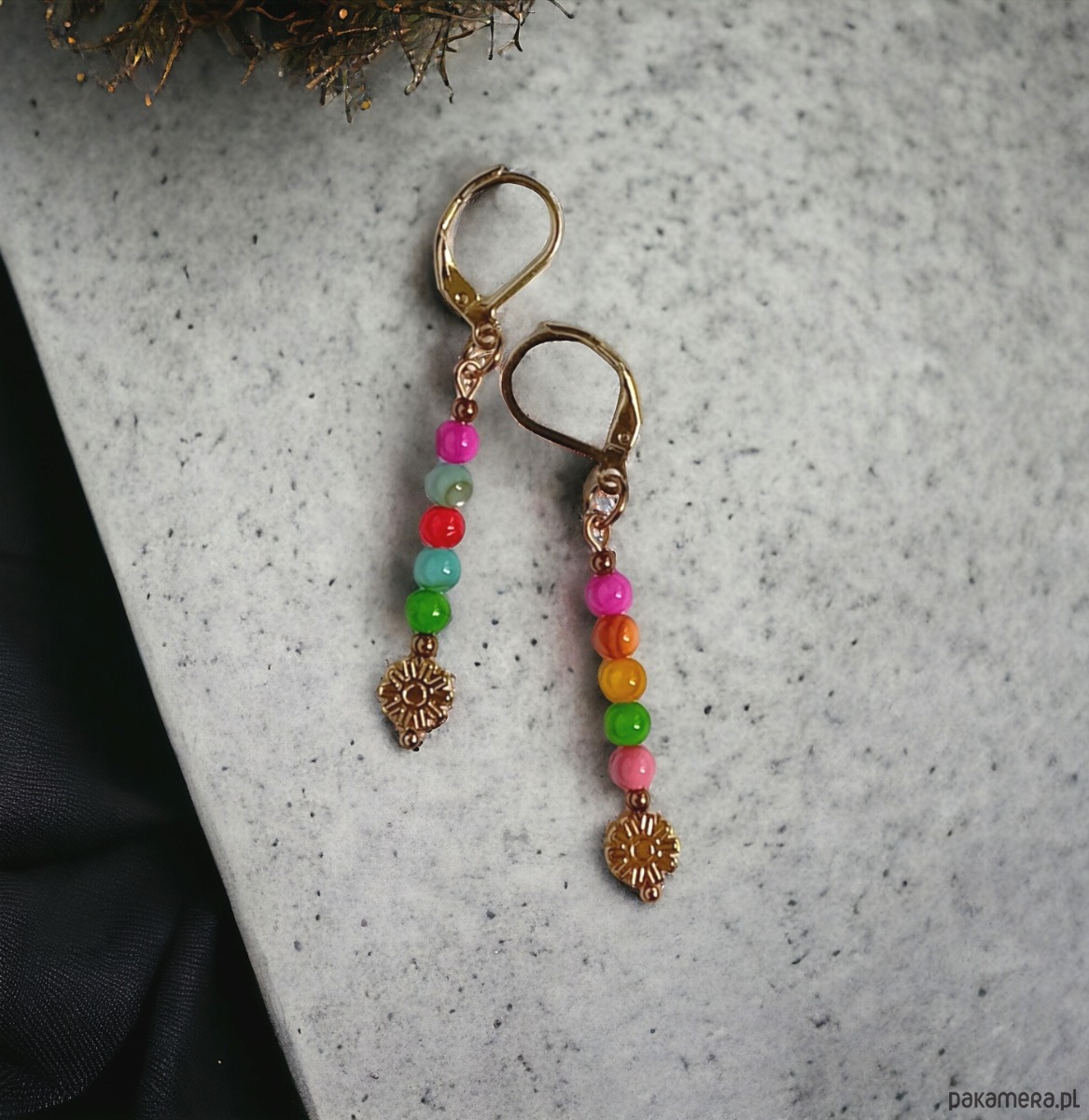 Kolczyki : summer collection : kolorowa muszla i kwiatuszki