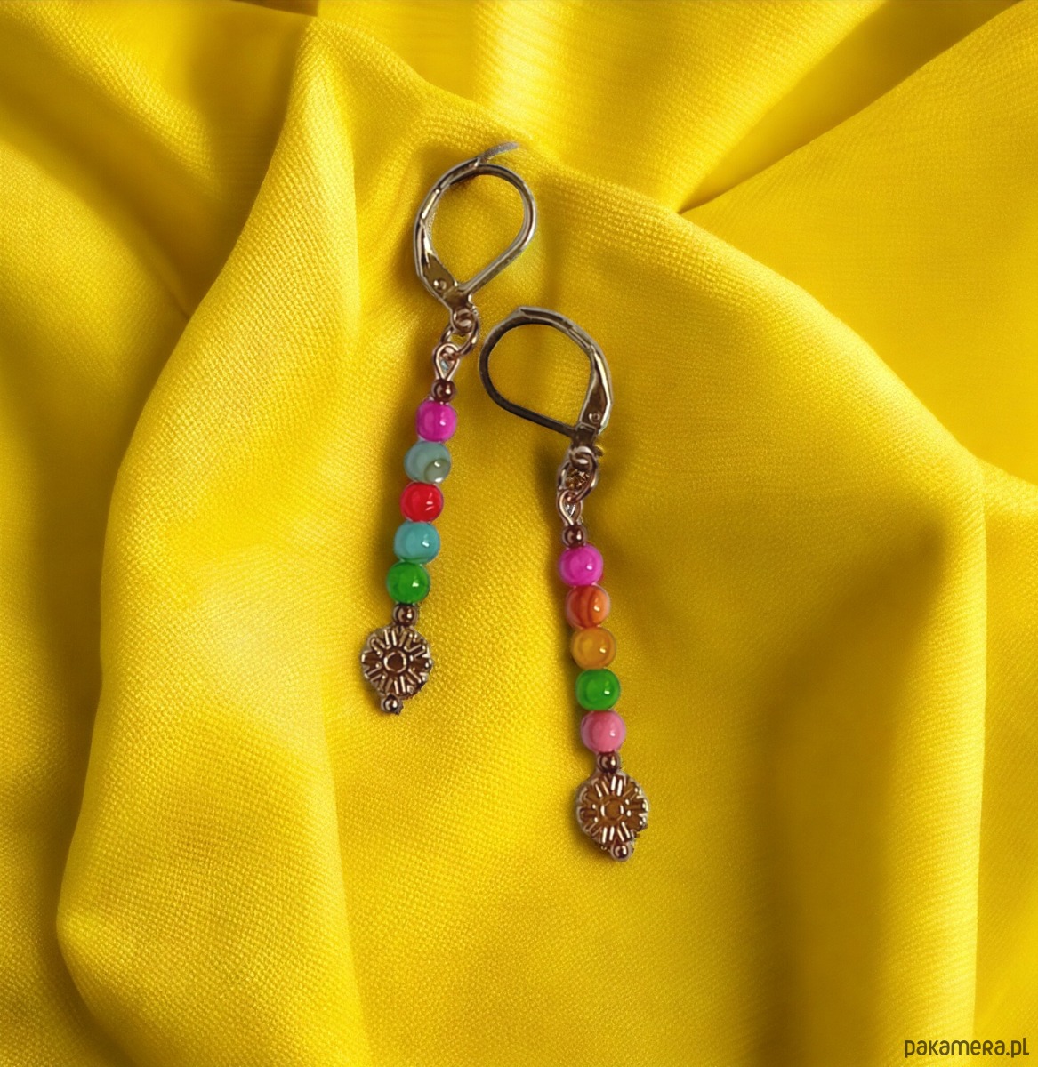 Kolczyki : summer collection : kolorowa muszla i kwiatuszki