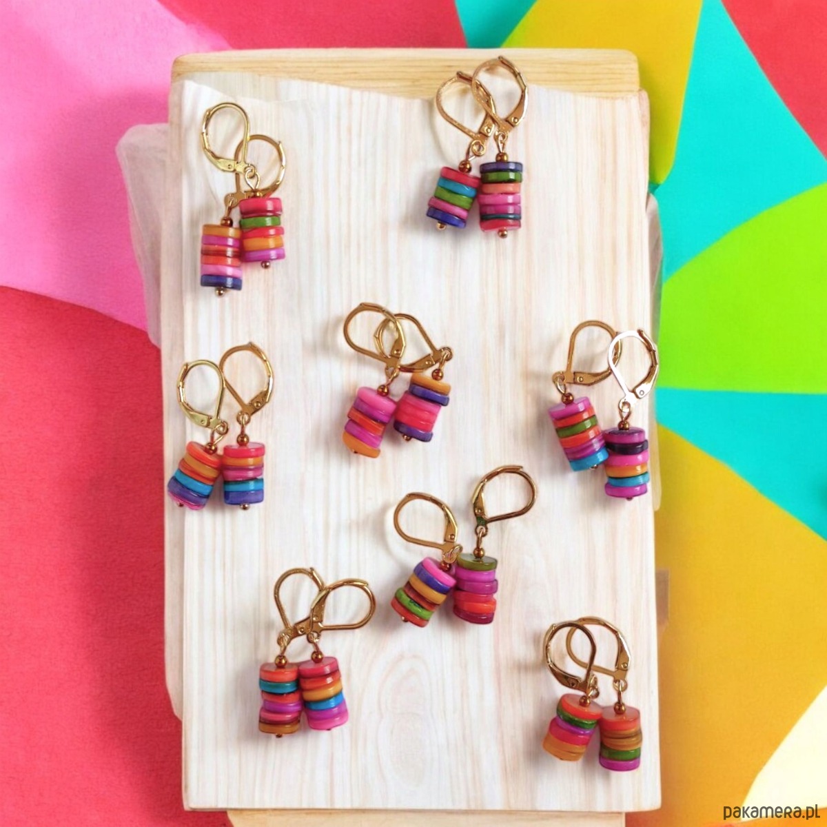 Kolorowe kolczyki wykonane z masy perłowej 8mm.