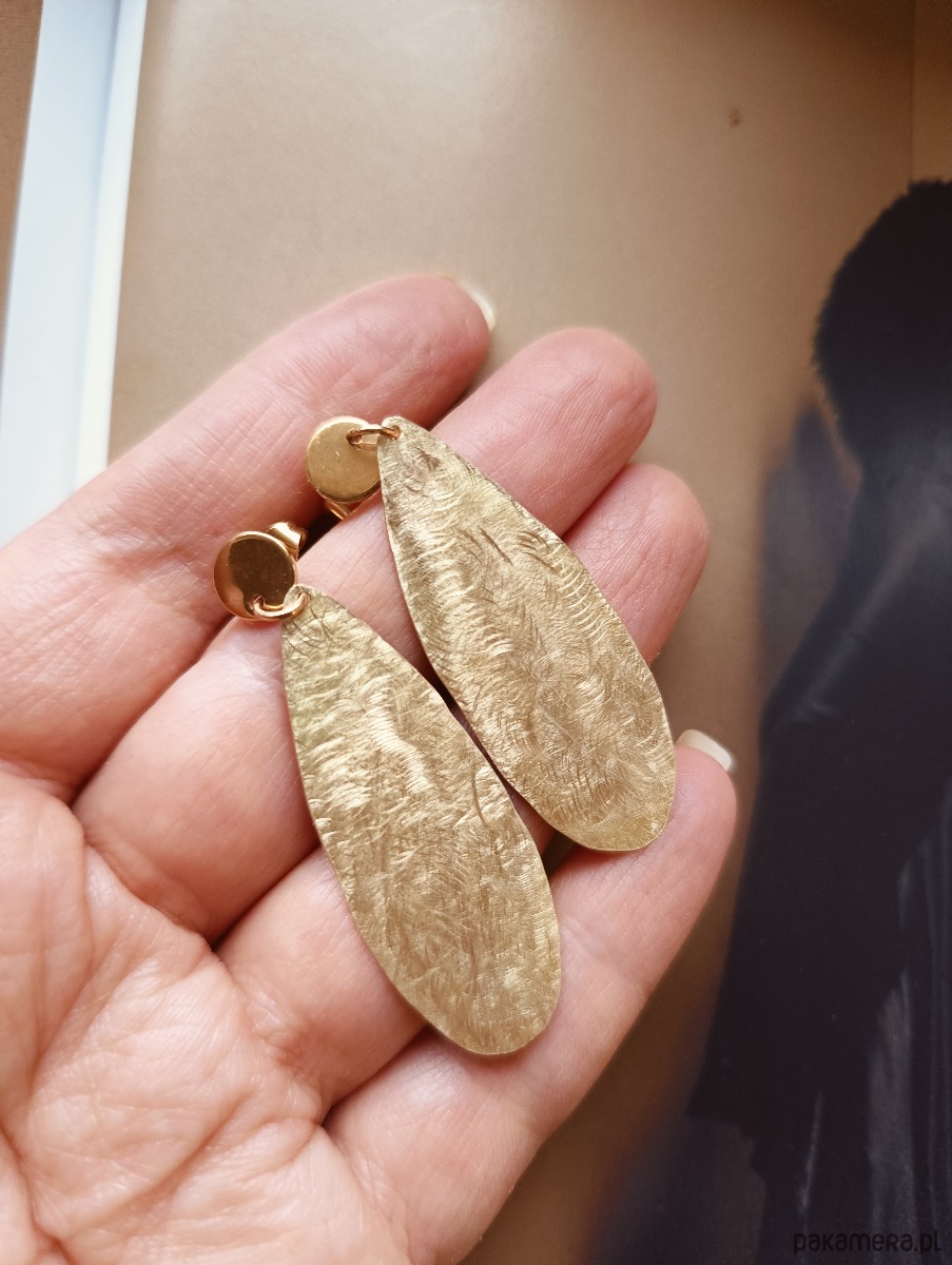 Kolczyki miedziane wycinane ręcznie i fakturowane.Bigle ze stali chirurgicznej.Bardzo efektowne.