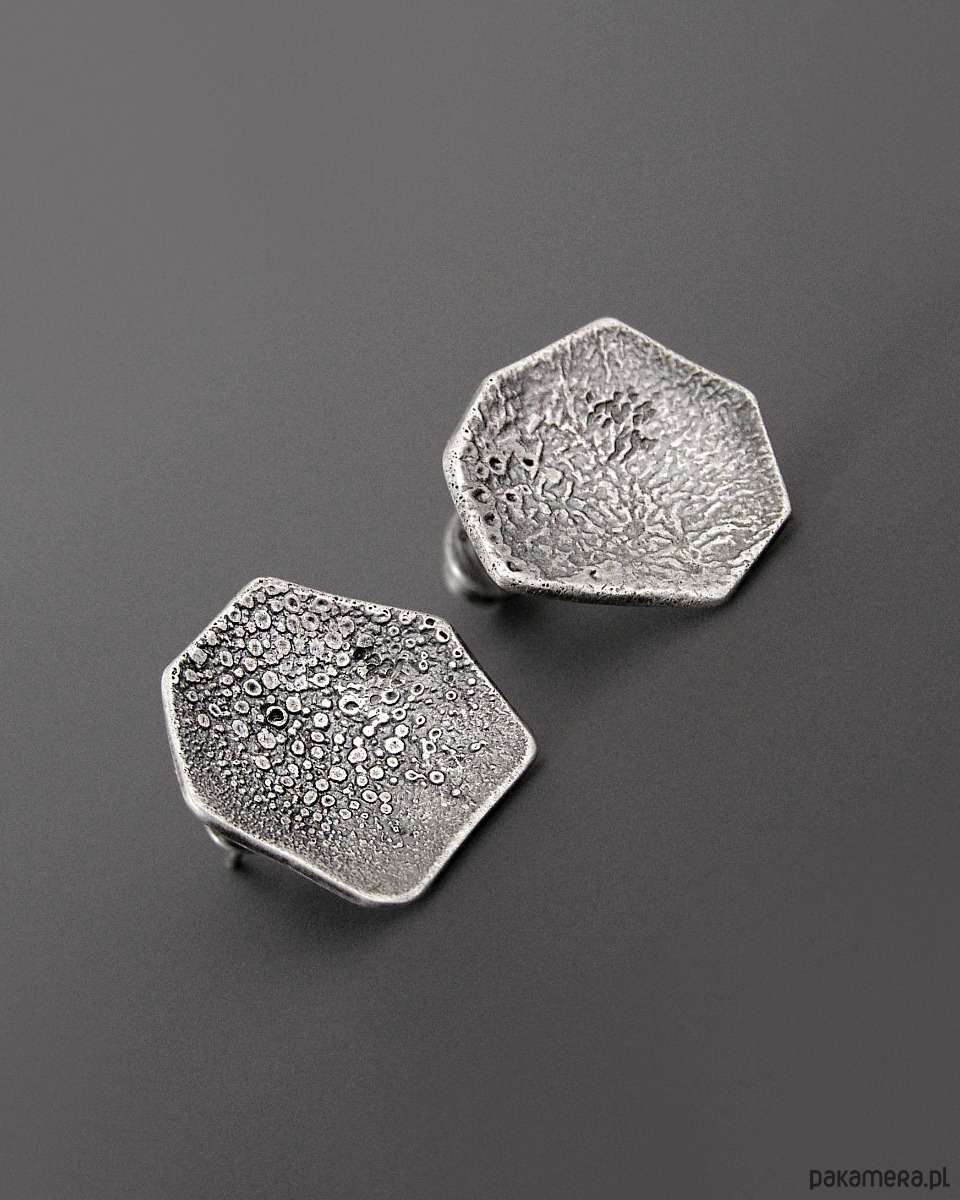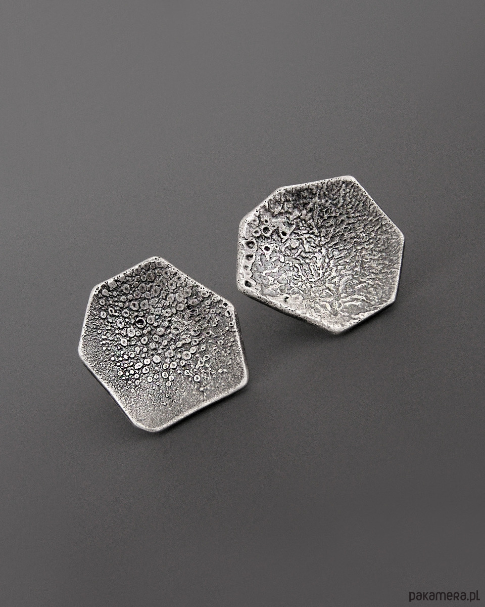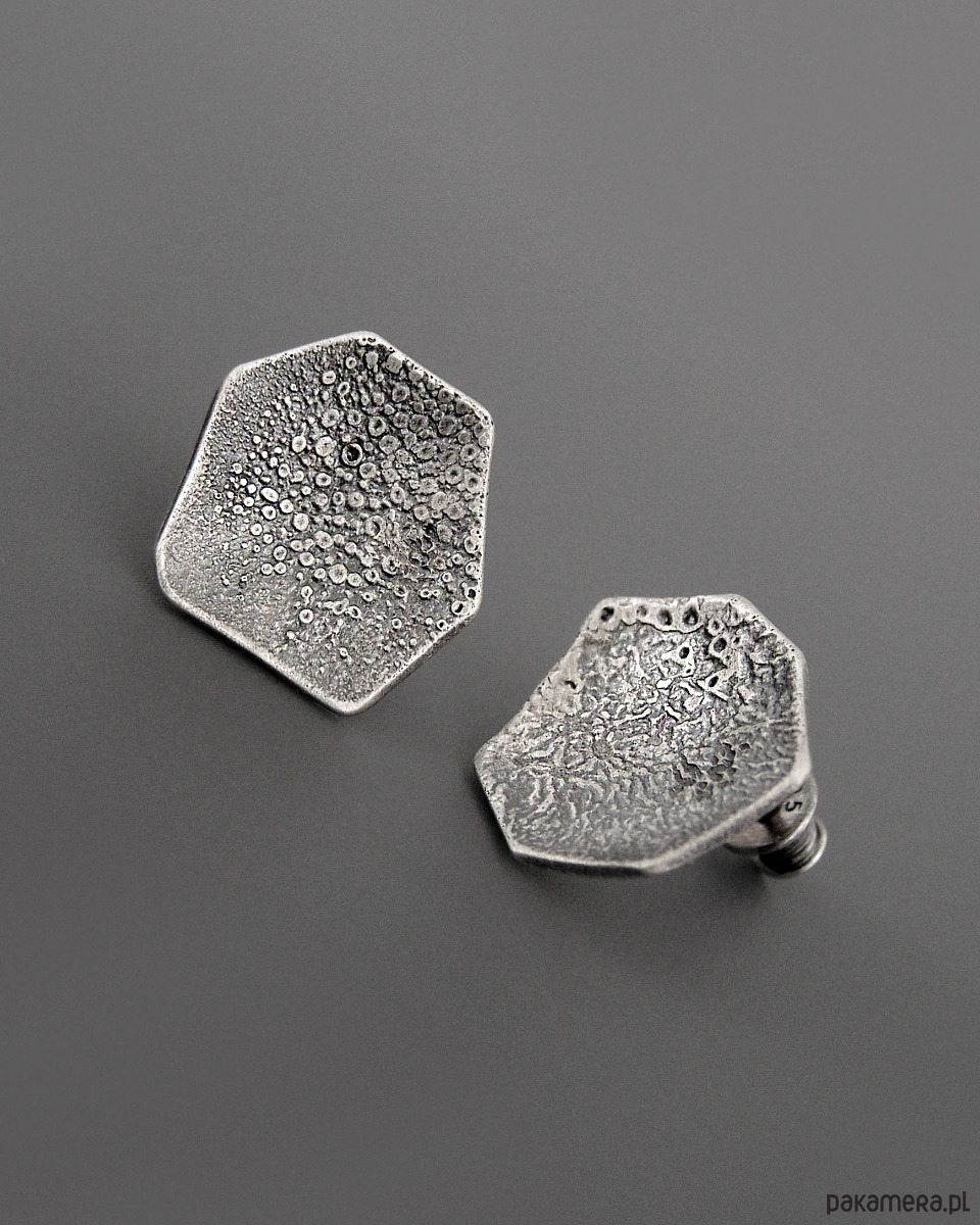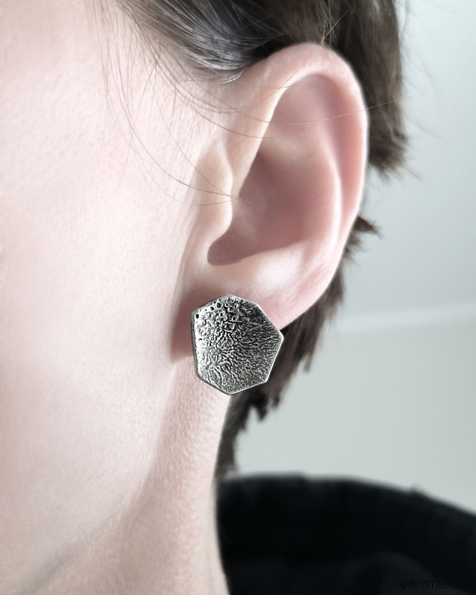 Unikatowe asymetryczne surowe Kolczyki sztyfty wykonane ze srebra próby 925.